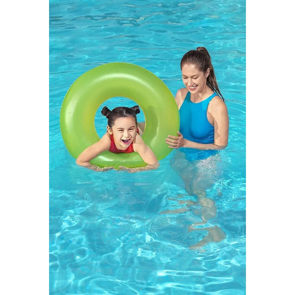 Salvagente Trasparente Neon, 2 Toni di Colore, 76 cm, Multicolore. Questo salvagente gonfiabile accende il divertimento. Rifinito con neon satinato è disponibile in 3 colori brillanti.