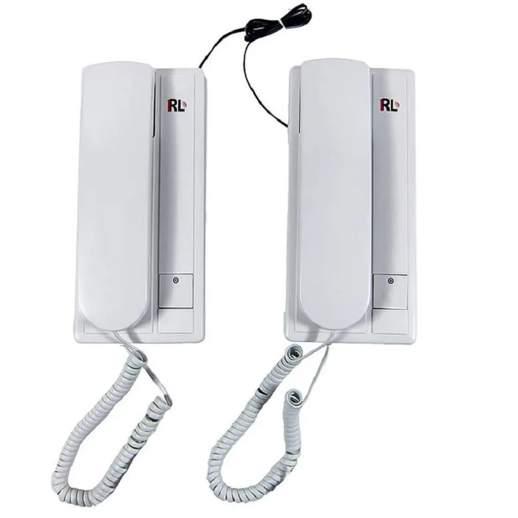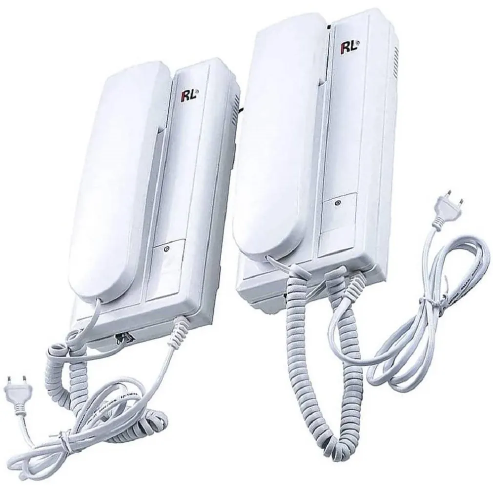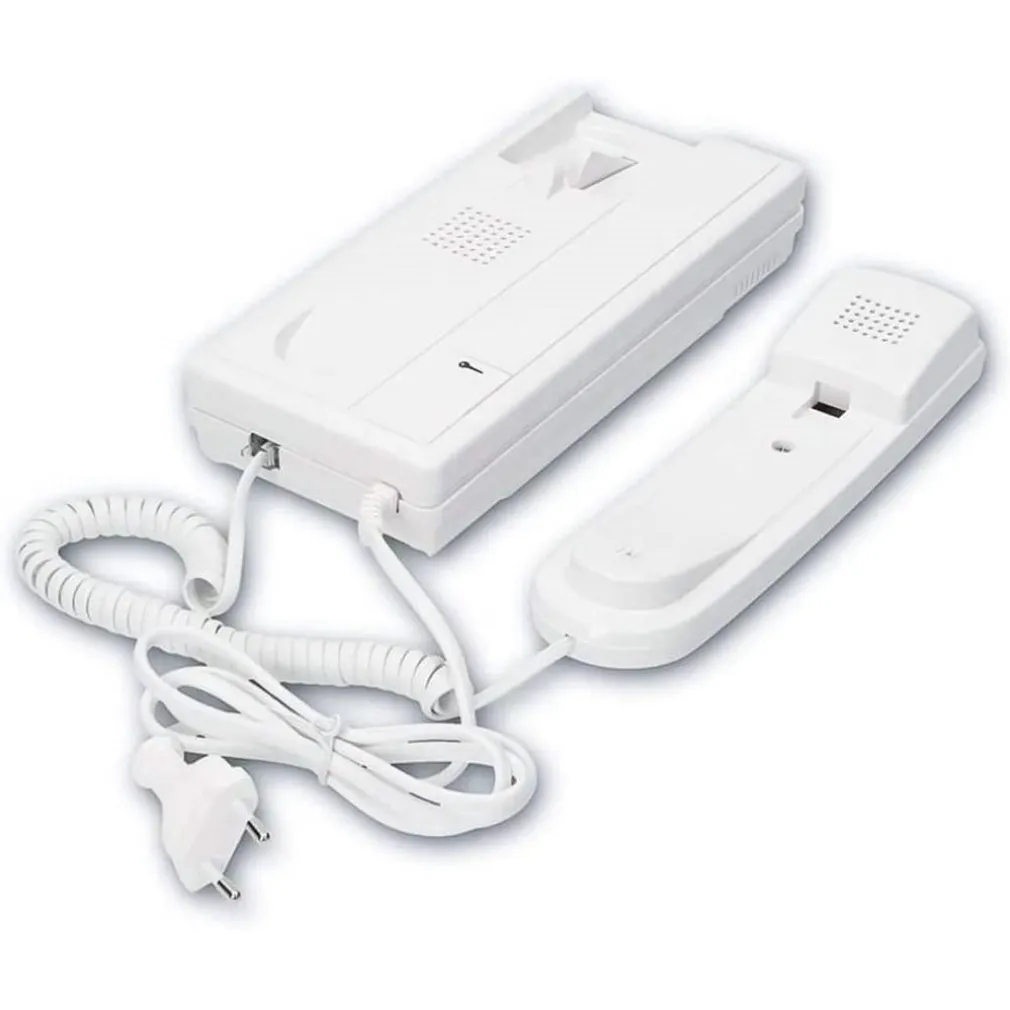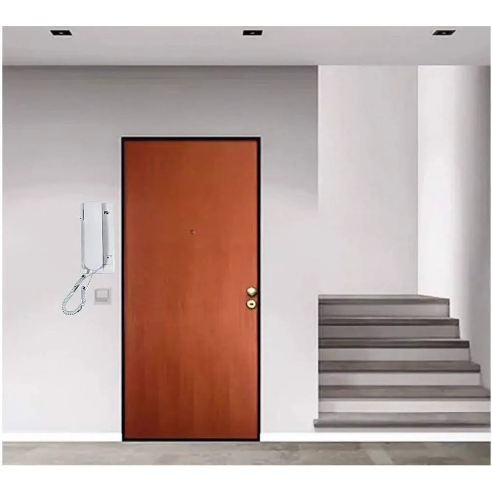 Interfono a parete composto da 2 unità interne con cornetta. Con cablaggio a due fili, il citofono è la soluzione ideale per abitazioni bifamiliari, ville, case, negozi a due piani, uffici e studi professionali.