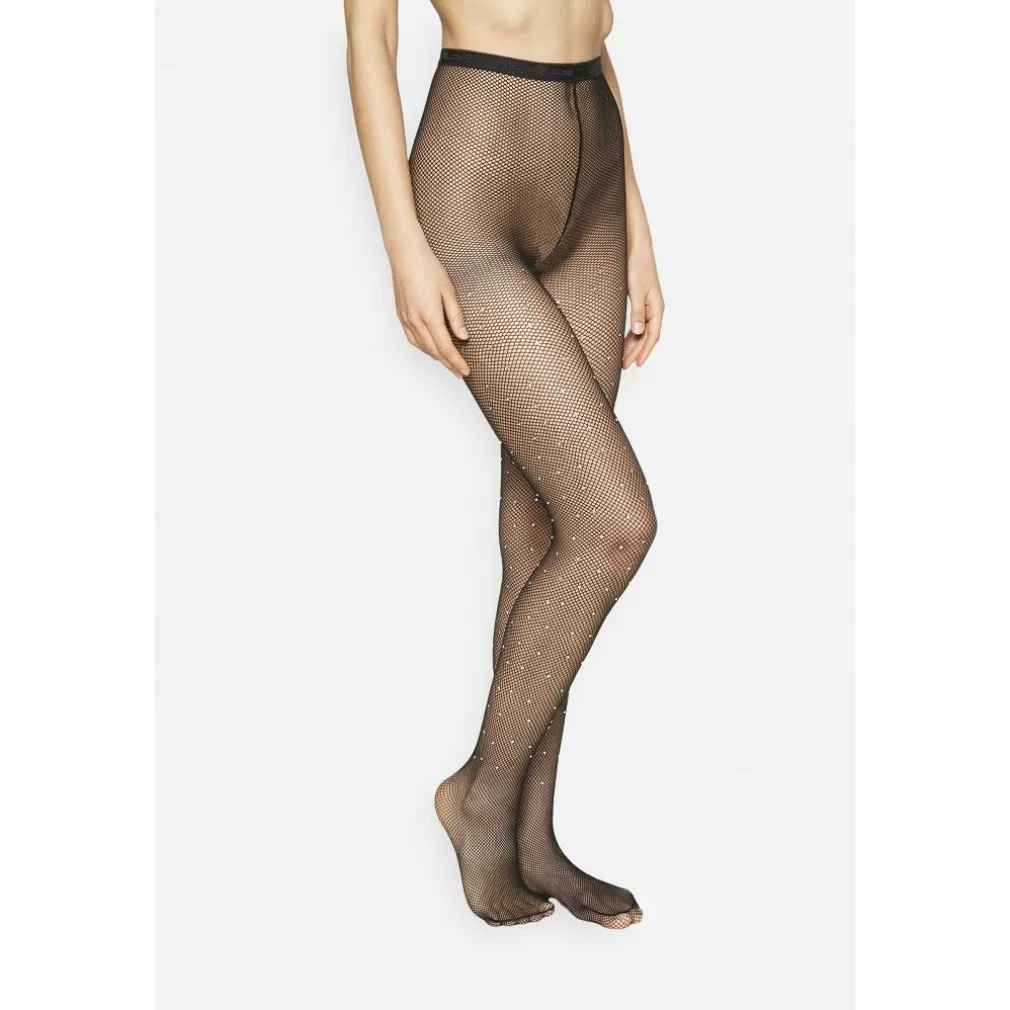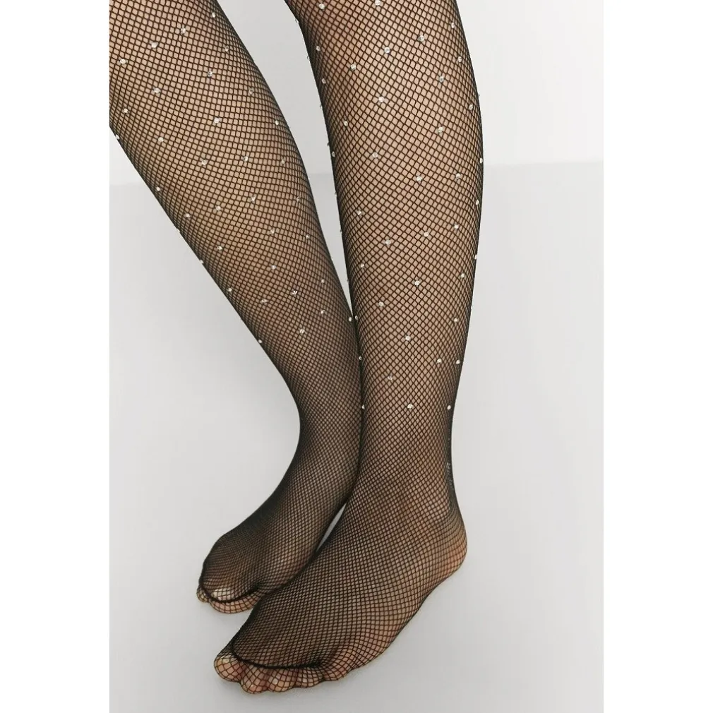 Arricchisci il tuo stile e lascia che le tue gambe brillino con il fascino irresistibile di queste calze a rete con brillantini.