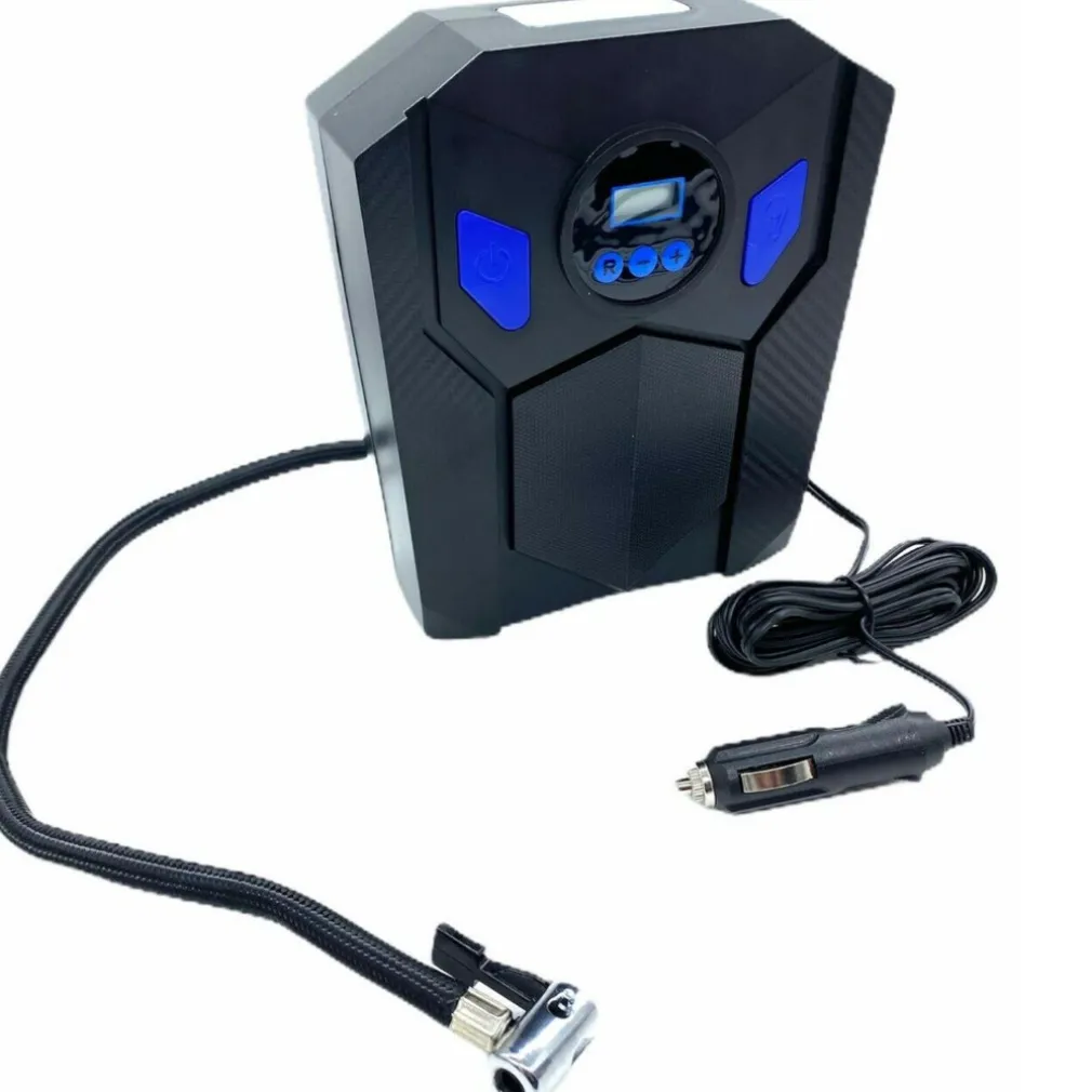 Compressore D’Aria Portatile Digitale Per Automobili,Ideale Anche Per Il Gonfiaggio di Palloni Da Sport,ruote di vario tipo e gonfiabili vari grazie agli adattatori di valvola inclusi. Manometro Digitale, sistema automatico di lettura della pressione, per una guida in tutta sicurezza, gonfiaggio facile, professionale e preciso Spegnimento Automatico dopo aver raggiunto la pressione impostata precedentemente Forma compatta e poco ingombrante, molto comodo per il trasporto, Utilizzabile nella maggior parte dei veicoli Con Lampada Led Sulla parte Superiore utilizzabile anche come lampada di emergenza , facile da utilizzare al buio