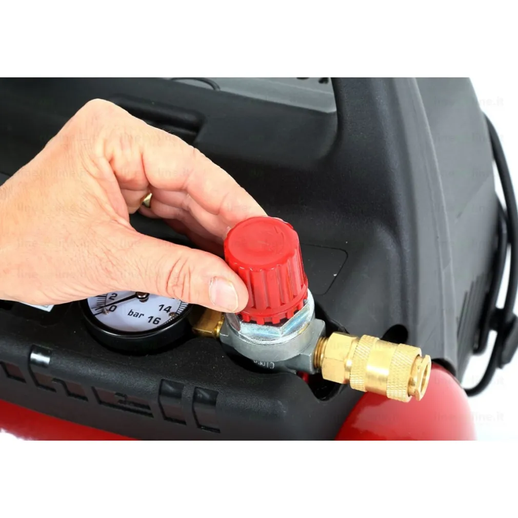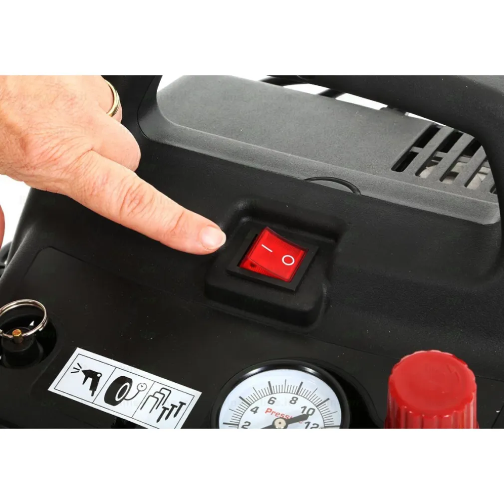 Il compressore Einhell TH-AC 190/6 OF è una delle novità 2016 con cui l’azienda vuole soddisfare le esigenze di coloro che hanno bisogno di soffiare, gonfiare, chiodare, sverniciare in ambito domestico e del “fai da te”. Compatto, piccolo, maneggevole il TH-AC 190/6 OF rappresenta lo strumento ideale per chi ha bisogno di spostarsi e portare il compressore in luoghi e situazioni diverse dalla propria casa. Questo modello ha la trasmissione diretta coassiale che riduce le dispersioni di potenza, non ha la lubrificazione ad olio, annullando in pratica le spese di manutenzione periodica e il motore da 1,5 Hp sviluppa 3.550 al minuto. Il peso modesto di 9,20 kg consente di trasportarlo in sicurezza e praticità ovunque anche grazie all’impugnatura ergonomica incorporata col resto della carenatura dal design compatto e innovativo. I comandi e gli accessori di cui è dotato sono: