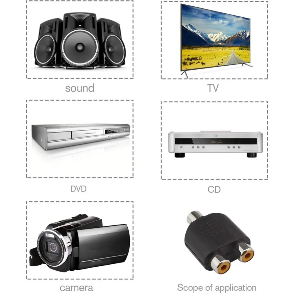 Connettore Adattatore Splitter RCA Femmina a 2 AUX RCA Femmina Audio Video C-026