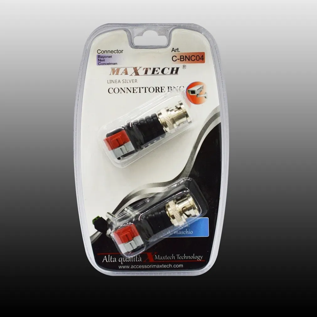 Connettore BNC e morsetti passivi, trasmettitore/ricevitore. CONNETTORE BNC per collegare telecamere usando un cavo coassiale schermato, ovvero potete portare l’immagine dalla telecamera al DVR per un rapido collegamento con il solo ausilio di un cacciavite. Questo connettore permette la trasmissione di segnale video tramite un cavo coassiale schermato.