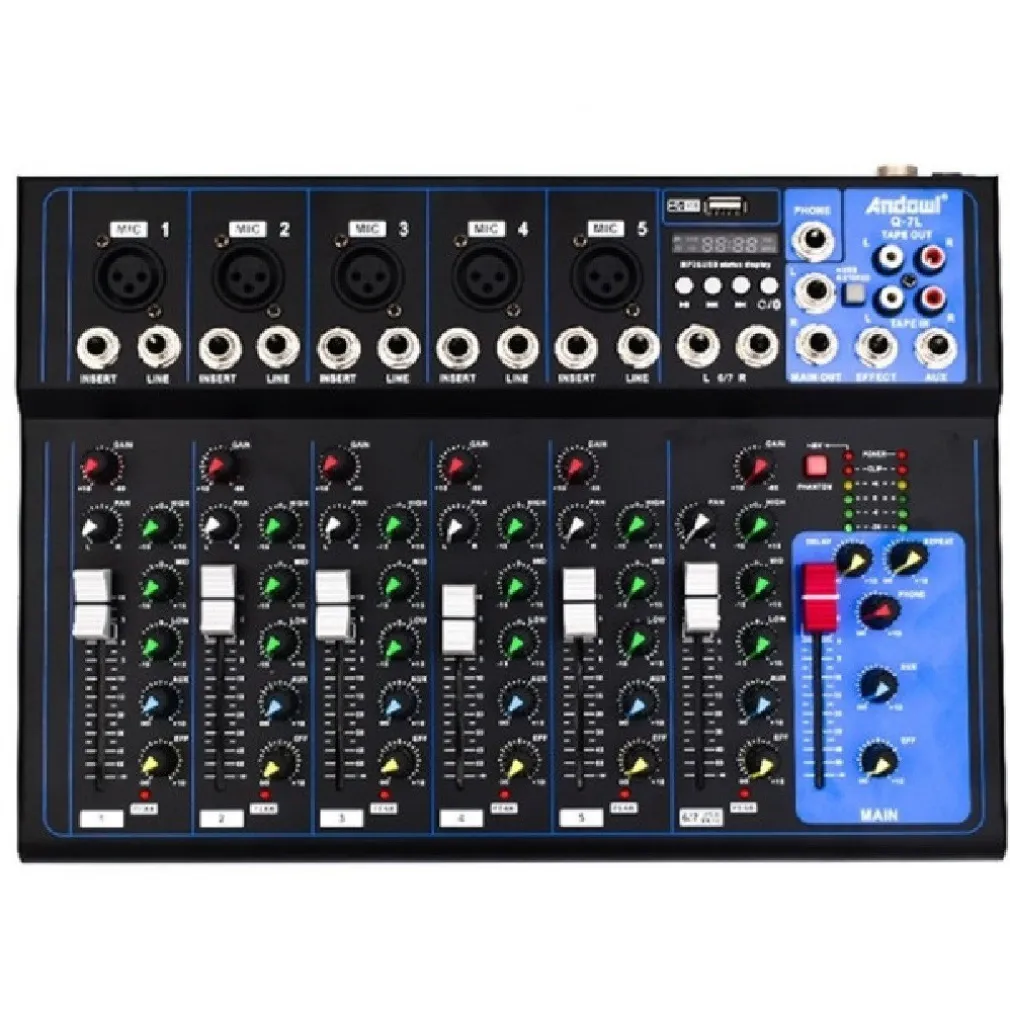 Console professionale ultra compatta a 7 canali, adatta per mixaggio e per registrazioni audio di alto livello, per studi professionali e per concerti su palco. Serie di console di missaggio professionale per le tue serate karaoke.