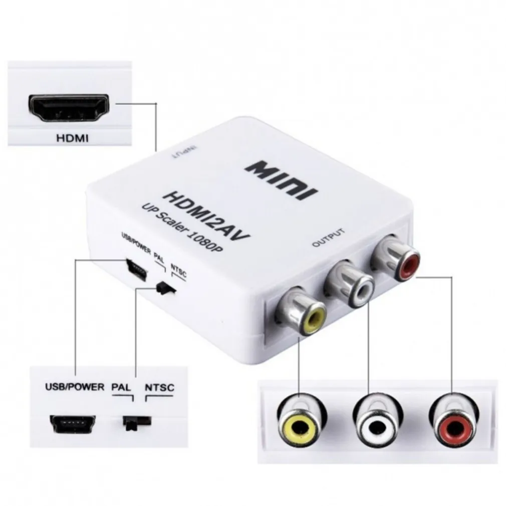 CONVERTITORE ADATTATORE VIDEO AUDIO DA HDMI AV RCA 2AV 1080P PER TV TELECAMERA