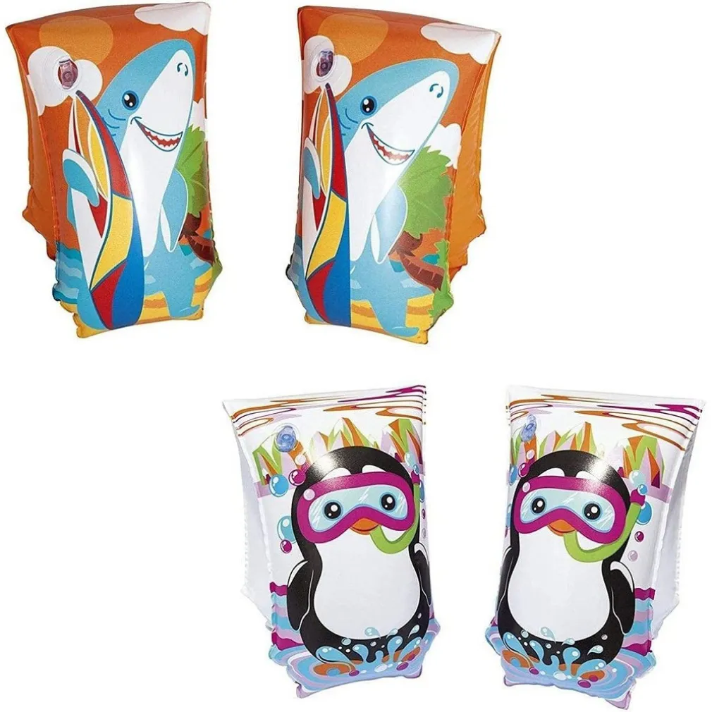 I braccioli sono graziosi ausili per il nuoto decorati con immagini di buffi animali acquatici che incoraggeranno i bambini a imparare a nuotare. Gonfia i braccioli e divertiti con il pinguino appassionato di snorkeling o lo squalo surfista. Questi braccioli taglia unica sono pensati per aiutare i bambini a rimanere a galla mentre imparano le tecniche di nuoto. Il design a due camere d’aria consente di limitare gli sforzi e rimanere più stabili mentre si è in acqua. Ora ancora più divertimento per i piccoli avventurieri, questi braccioli da nuoto innovativi e testati di qualità vi invitano a gonfiare e giocare in acqua fredda, sia in piscina che in spiaggia. Con il loro design colorato, sono un must per ogni bambino.