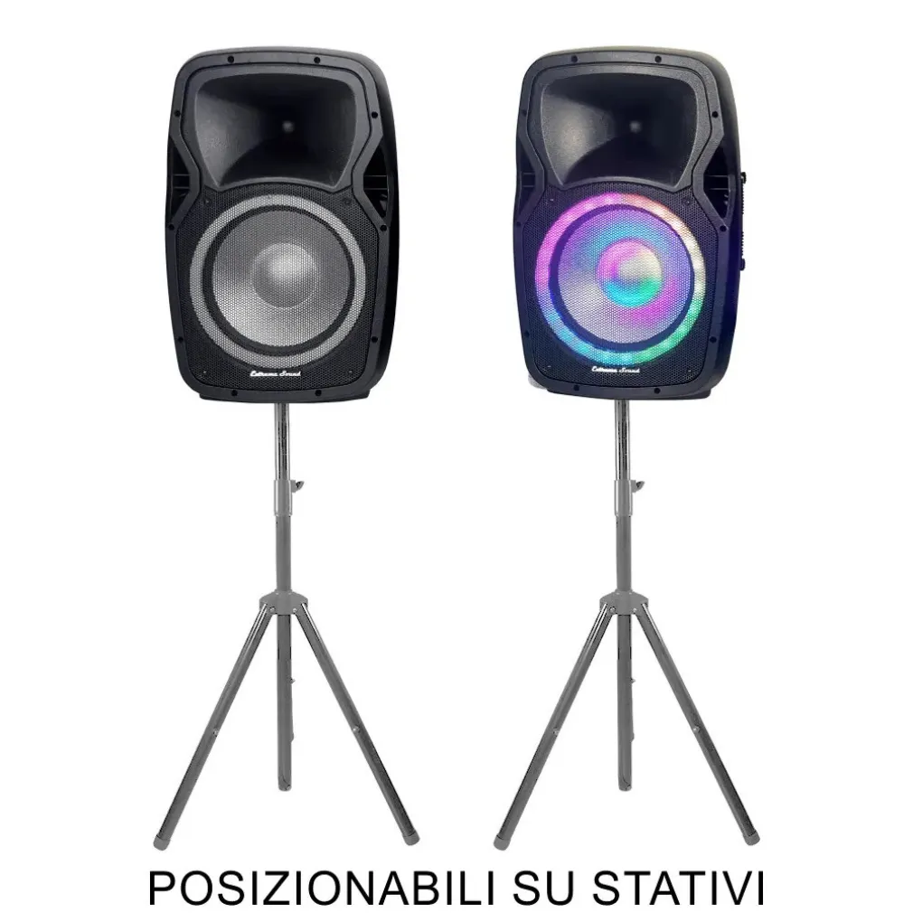 COPPIA CASSE AUDIO AMPLIFICATE 2000W EXTREME SOUND 12″ BLUETOOTH USB RGB XEVO-12