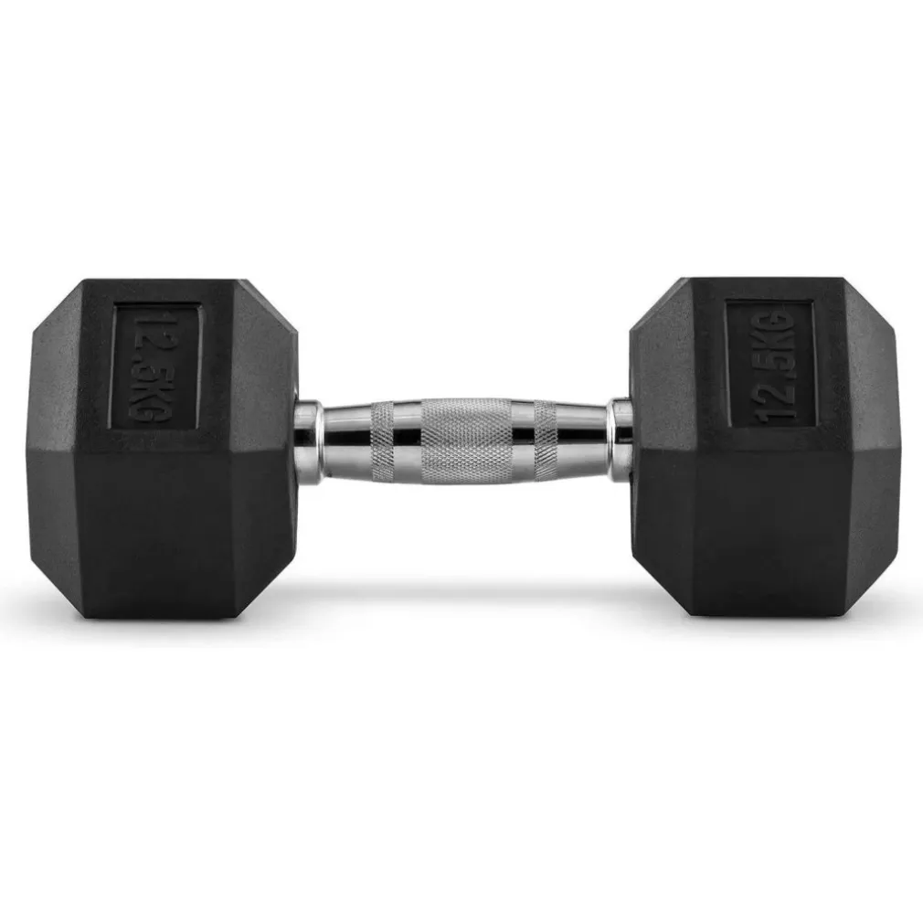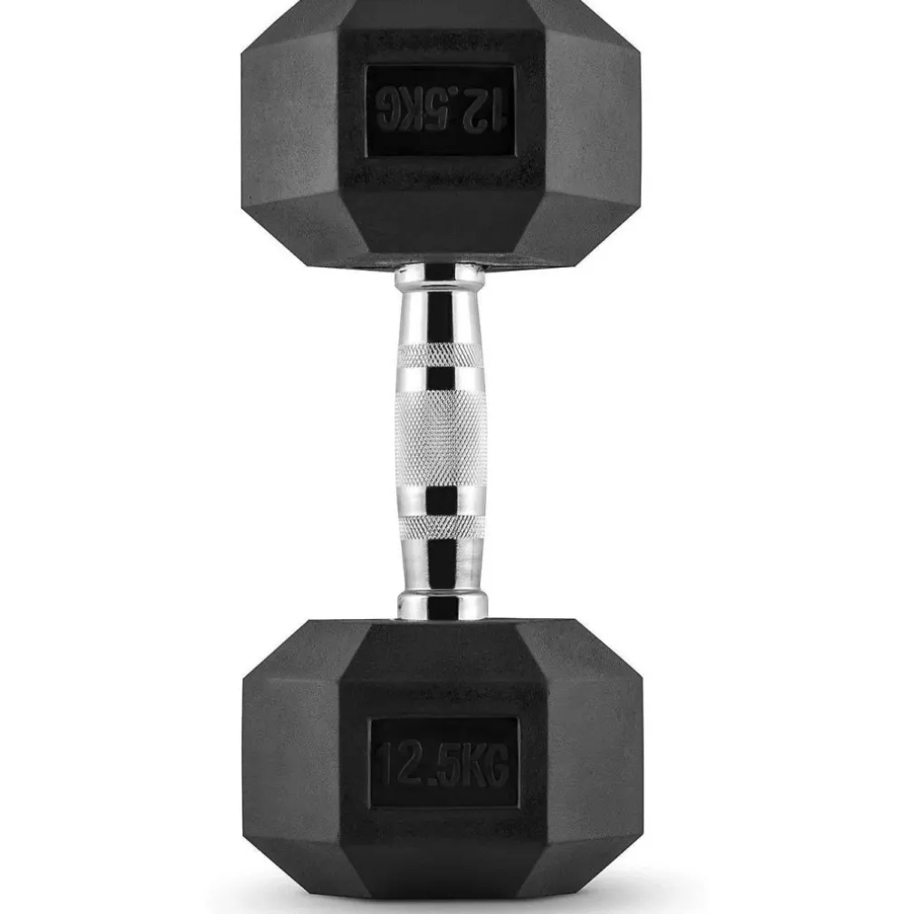 Coppia di bilancieri solidi da 12,5 kg per il Body Building, il Cross-Training o l’allenamento funzionale | Spesso rivestimento in gomma, resistente agli urti per proteggere la superficie dei pavimenti e dei mobili | Maniglia del bilanciere cromata con zigrinatura per una presa sicura Pesi non sostituibili | Resistente al vento ed alle intemperie: adatto per un utilizzo all’aria aperta Peso: 12,5 kg | Peso con incisione per un facile riconoscimento in mezzo ad altri pesi | Con forma esagonale con sei facce: con una presa sicura ad esempio per gli esercizi di PushUp Sia che vogliate effettuare esercizi di Cross-Training o un allenamento funzionale con il bilanciere Hexbell della Capital Sports troverete sempre il giusto peso da utilizzare. Racchiuso all’interno di un robusto rivestimento in gomma dura si trova il nucleo in ferro che è la parte che determina poi il peso del bilanciere Hexbell . Con questa coppia riceverete due bilancieri da 12,5 kg che sono adatti per un utilizzo nella propria palestra di casa o all’aperto.