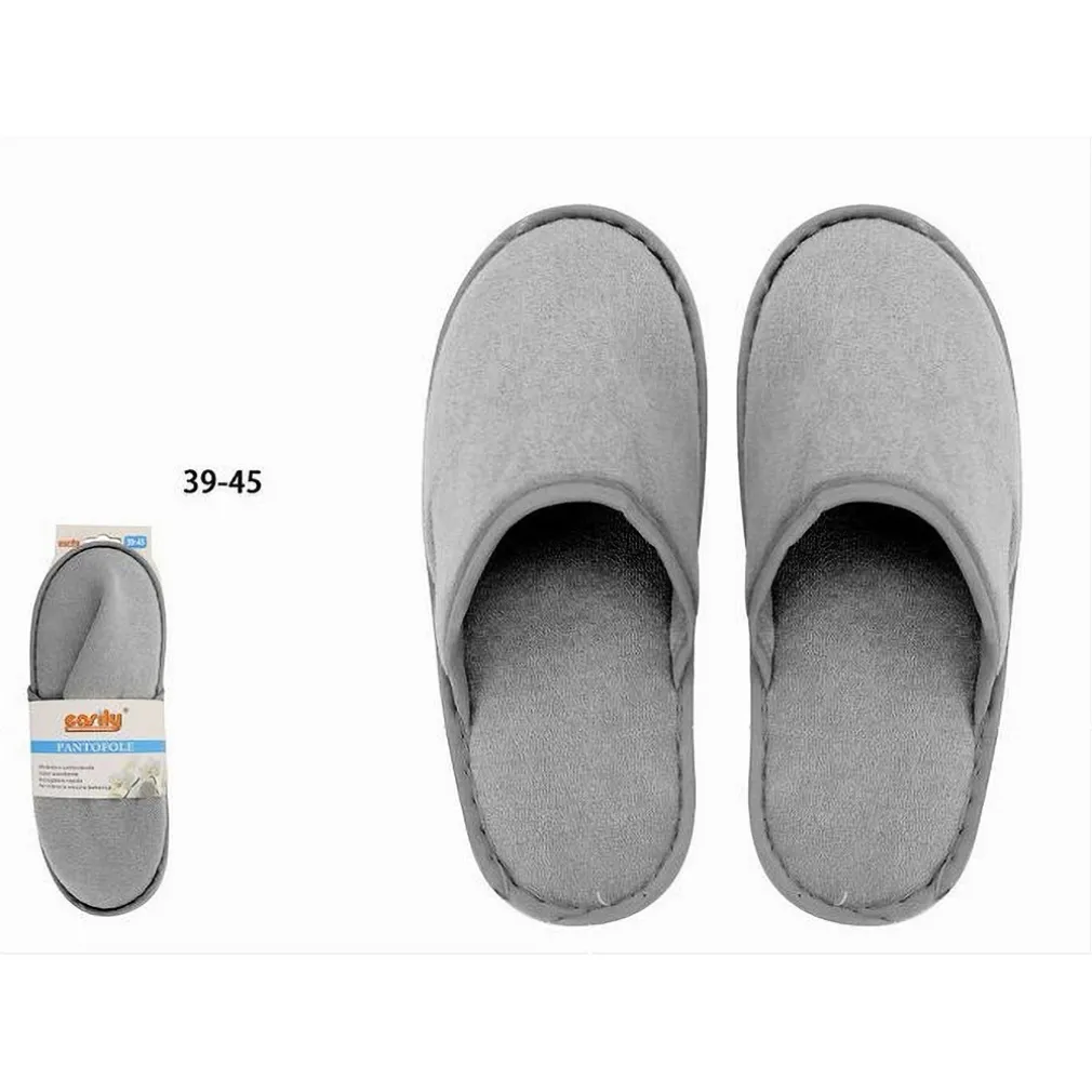 Coppia di Pantofole Ciabatte Bagno Chiuse in Tessuto Grigio – Taglia 39-45 per Hotel e Stanza 79695