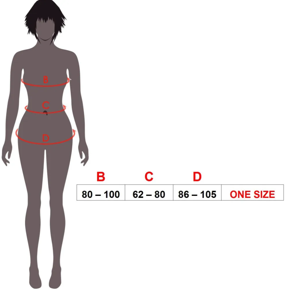 - Taglia unica, adatta alla maggior parte delle donne con una taglia compresa tra 90 e 70 Kg.