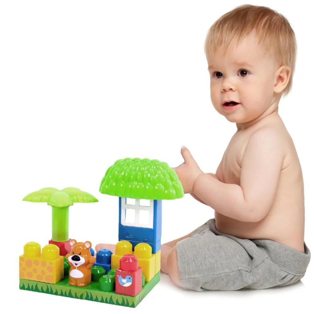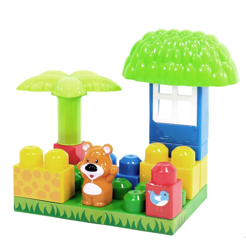 Costruisci il regno della foresta con questo bellissimo set di costruzioni. Il set include ben 14 blocchi per costruire il magnifico mondo della foresta con alberi foglie e un simpatico tigrotto. Realizzati in plastica di alta qualità queste costruzioni sono l’ideale per i bambini più piccoli per aiutarli a sviluppare le loro capacità motorie e cognitive.