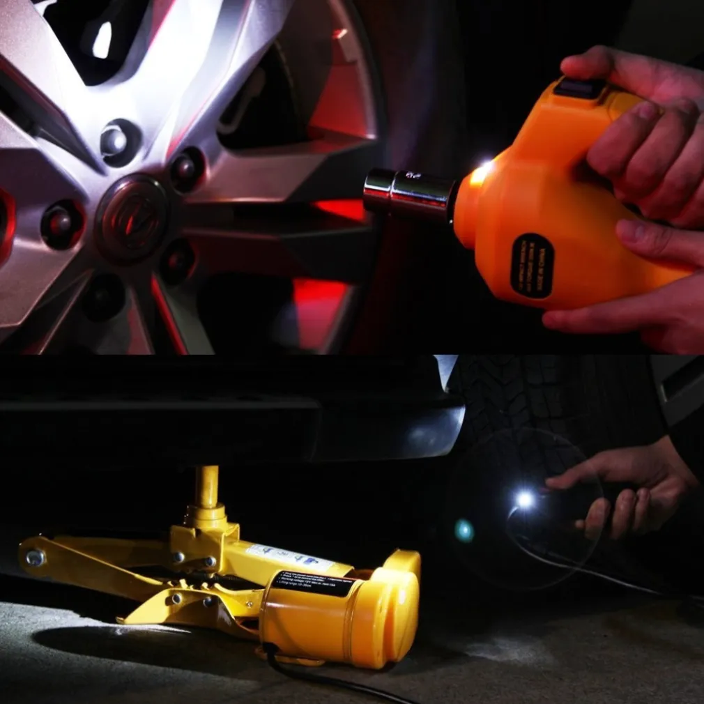 Cric auto elettrico a 12V con presa accendisigari e morsetti per collegamento alla batteria(collegamento consigliato e ad auto accesa). Un attrezzo indispensabile in qualsiasi auto per situazioni di emergenza o anche semplicemente per effettuare piccoli lavori senza sforzo. Completa il kit la pistola ad impatto per svitare i bulloni delle ruote e due bussole esagonali