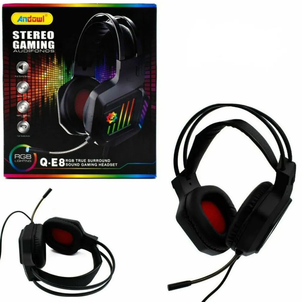 Cuffie da gioco progettate per abbracciare l’orecchio coprendolo completamente (sopra l’orecchio). Ti offrono comfort e un isolamento acustico sufficiente dall’ambiente. Hanno un’illuminazione RGB che offre combinazioni di colori per scegliere l’aspetto desiderato. Le due spine da 3,5 mm sono collegate rispettivamente all’uscita delle cuffie e all’ingresso del microfono. Design moderno e prestazioni eccellenti!Con un altoparlante di grandi dimensioni da 40 mm, l’auricolare può avere un’impedenza dell’altoparlante di 32 Ω, una risposta in frequenza dell’altoparlante da 20 Hz a 20 KHz e una sensibilità dell’altoparlante di 110 dB ± 3dB, offrendo un’esperienza musicale bilanciata e stabile. È possibile ottenere una migliore esperienza di gioco ascoltando accuratamente il suono in movimento del personaggio dell’avversario del gioco. Adottando una sorgente di luce RGB di alta qualità, offrendoti fantastici effetti di luce di gioco in situazioni buie, possedendo un’eccellente funzione decorativa, alla moda e interessante, perfetta per l’uso del giocatore di gioco. L’auricolare è progettato con una morbida muffola, che copre delicatamente l’orecchio, offrendo un’esperienza di utilizzo più confortevole e buone prestazioni di isolamento acustico, senza indossare scomodi dopo un lungo tempo di gioco.