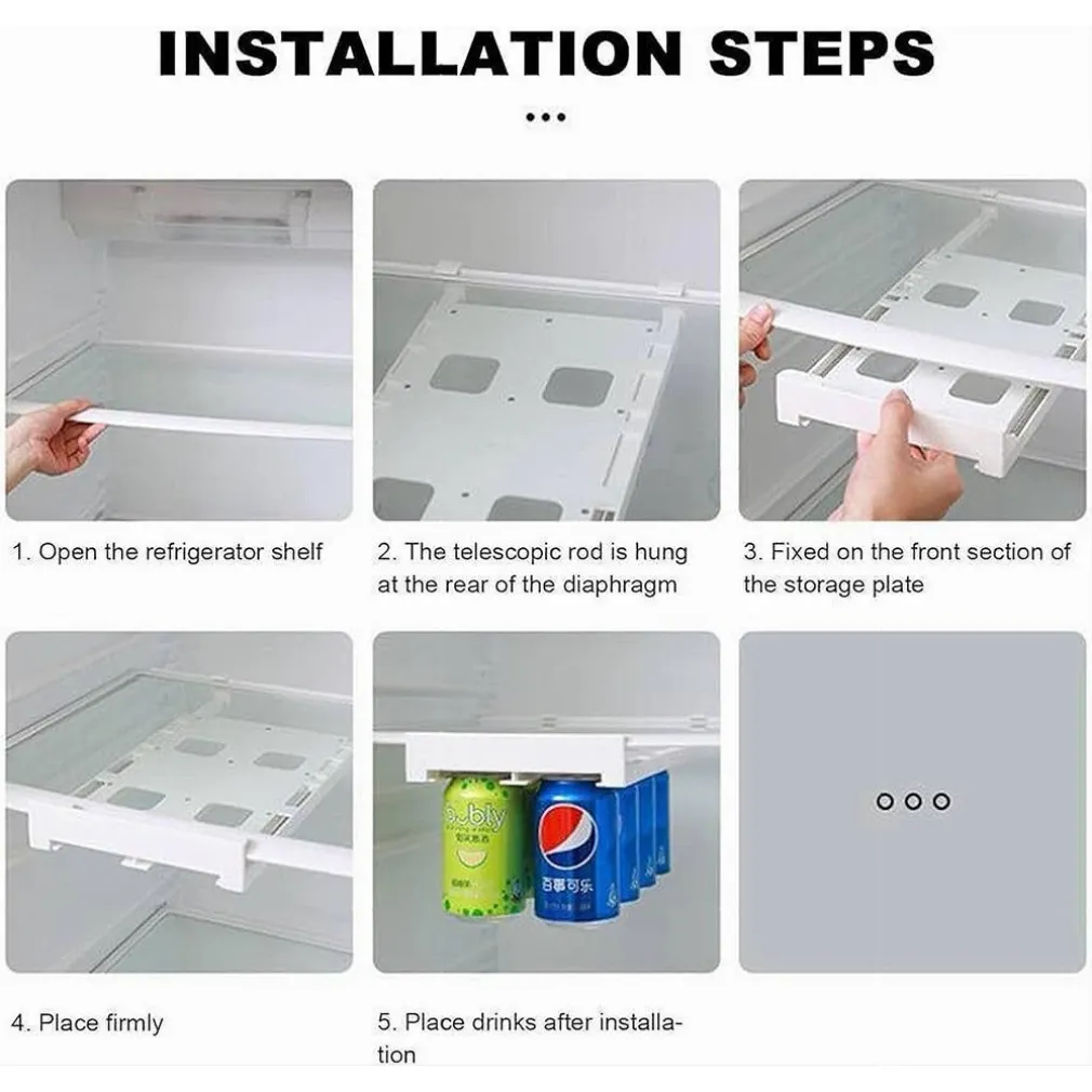 - Il dispenser può essere appeso sopra i vetri del ripiano superiore del tuo frigorifero, ottimizzando lo spazio verticale non utilizzato.
