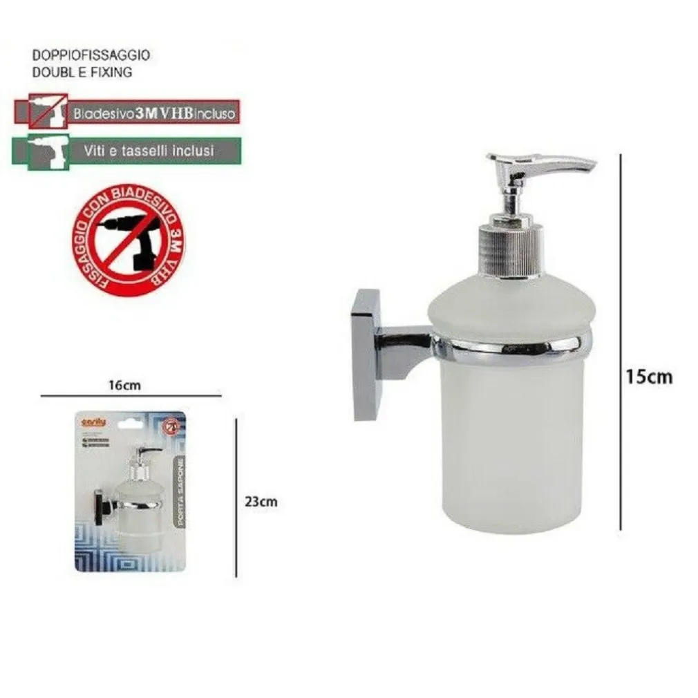 Scopri il Dispenser Porta Sapone Liquido in Vetro Satinato, una soluzione elegante e pratica per il tuo bagno. Con il suo design moderno e il fissaggio a parete, questo dispenser non solo aggiunge un tocco di stile al tuo ambiente, ma offre anche una soluzione igienica e comoda per il sapone liquido.