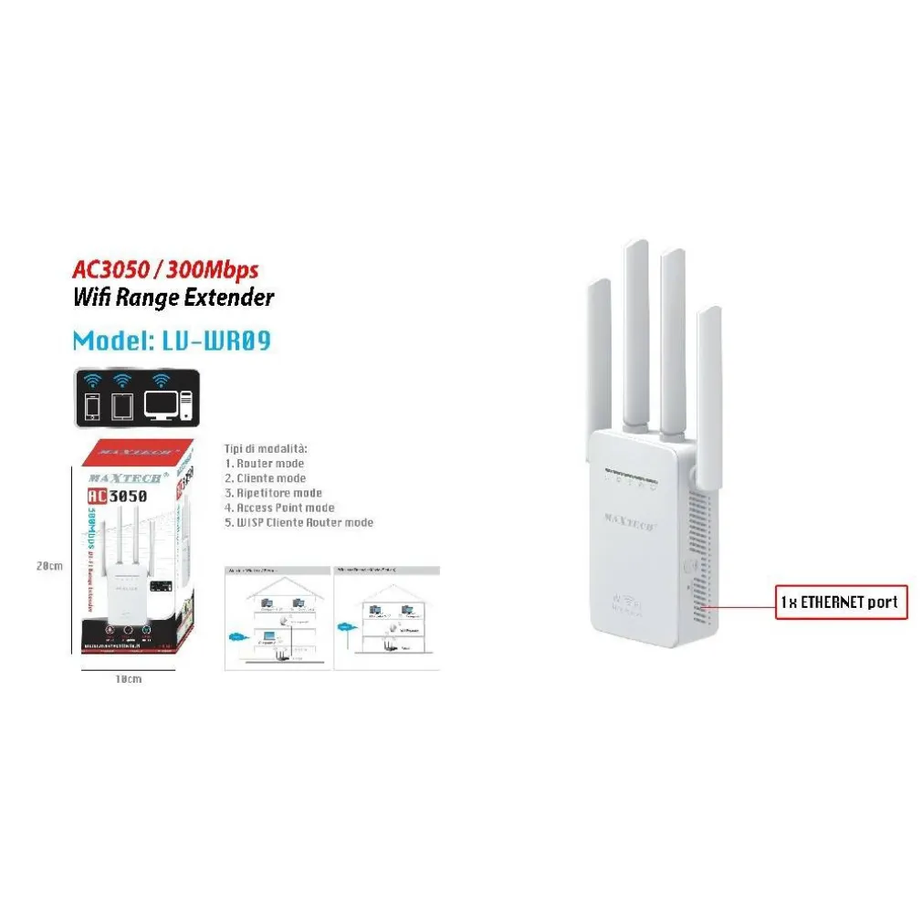 Modalità operative multiple Disponibile: il ripetitore del segnale supporta router, ripetitore, extender, cliente e modalità AP, può essere applicato a rete domestica o aziendale. Potenti antenne esterne 4: il ripetitore si estendono connessione WiFi wireless stabile e un’ampia copertura, aumentando WiFi per la vostra cucina, camera da letto, soggiorno, giardino, bagno, ecc. Estendere Wifi fino a 300Mbps: il router Wi-Fi è compatibile con 802.11b / g / n adattatori, velocità di trasmissione è fino a 300Mbps per il più veloce download, giochi e streaming HD. Alta Sicurezza WPS Button: le connessioni Wi-Fi con WPA / WPA2, WPA-PSK / WPA2-PSK crittografia di sicurezza, che stabiliscono rete wireless definitivamente al sicuro. Indicatori LED intelligente: quando si è connessi, la luce LED intelligente sul router vi dirà come funziona; LED blu indica l’estensore è collegato ma è troppo vicino dal router, significa rosso è troppo lontano dal router e verde significa che è in un buon collegamento e la posizione