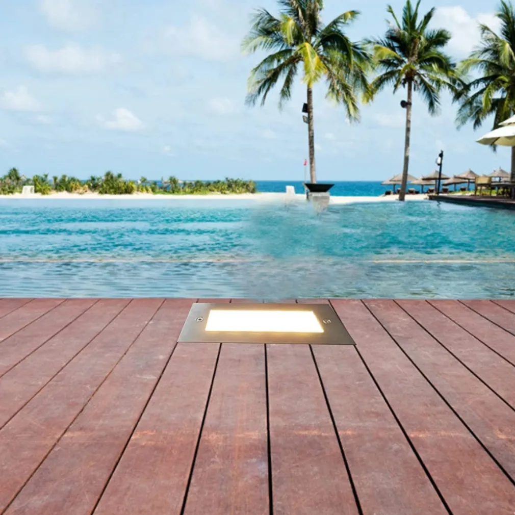 faretto a 3 LED ad incasso per luoghi chiusi o aperti, ideale per illuminare il vostro giardino, vialetti, fontane, piscine, sale interne e per creare percorsi. Esteticamente bello da vedere, si alimenta a 220V e attraverso la tecnologia LED disporrete della massima efficienza e luminosità con il minimo consumo. La parte che risulterà visibile una volta installato, e costituita da una ghiera a forma rettangolare in metallo con la parte centrale semitrasparente per un espansione luminosa dei LED ancora più efficace. Il corpo in ottimo materiale PVC conferisce al prodotto una forte solidità e robustezza, rendendo il faretto stesso calpestabile. La longevita e davvero straordinaria, superando le ben 50.000 ore di vita. Un articolo dal rapporto qualità/prezzo unico.