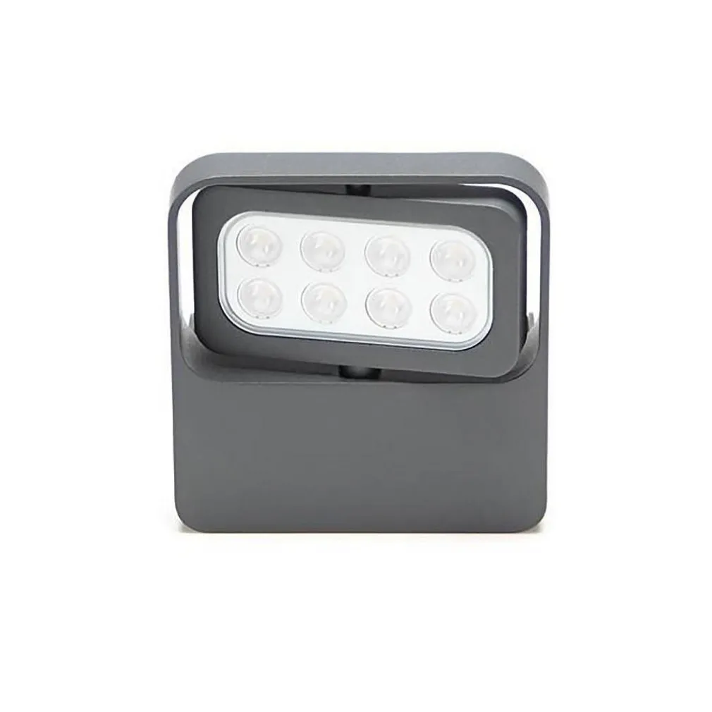 Particolare faro LED moderno con staffa adatto per installazioni a parete, terra o soffitto per l’illuminazione esterna di vetrine, tabelle, insegne, all’esterno di centri commerciali, all’esterno di abitazioni, per l’illuminazine del giardino, come luce mirata per l’illuminazione piante, alberi, fontane, statue. Il faretto integra 8 LED SMD con potenza 9.5W.
