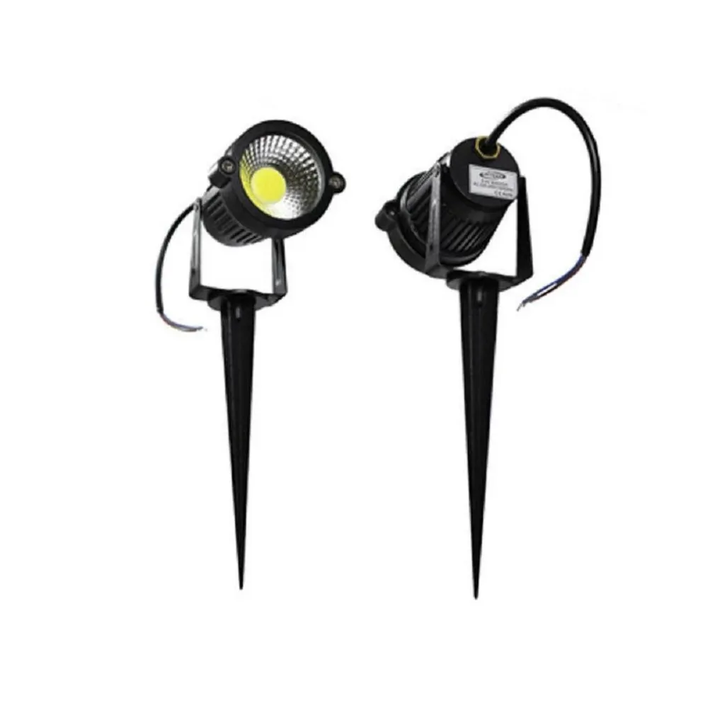 Faretto led cob 5 watt completo di staffa per il fissaggio a parete o al soffitto e di picchetto a punta per inserirlo direttamente nel terreno illuminando così qualsiasi punto del vostro giardino. Grazie alla staffa snodata sarà possibile puntare il faretto dove meglio preferite. È disponibile a luce bianca fredda 6500k, luce calda 3000k, luce naturale 4000k e a luce verde.