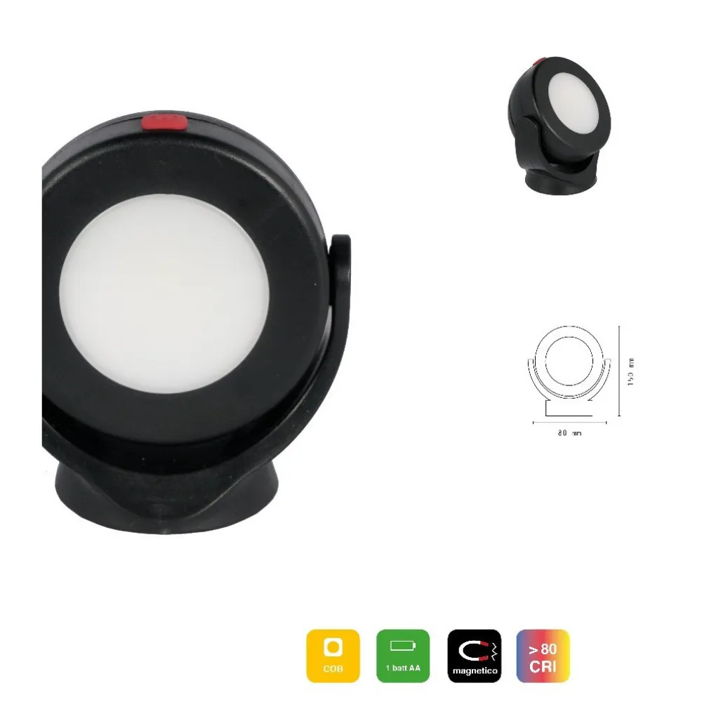 Faretto a led da campeggio ( lampada) portatile ed appendibile con potente chip led COB e ricaricabile in modalità USB. Facilmente applicabile sulle superfici grazie al potente magnete di cui è dotato. Elemento indispensabile durante bivacchi, escursioni, campeggi e passeggiate notturne.