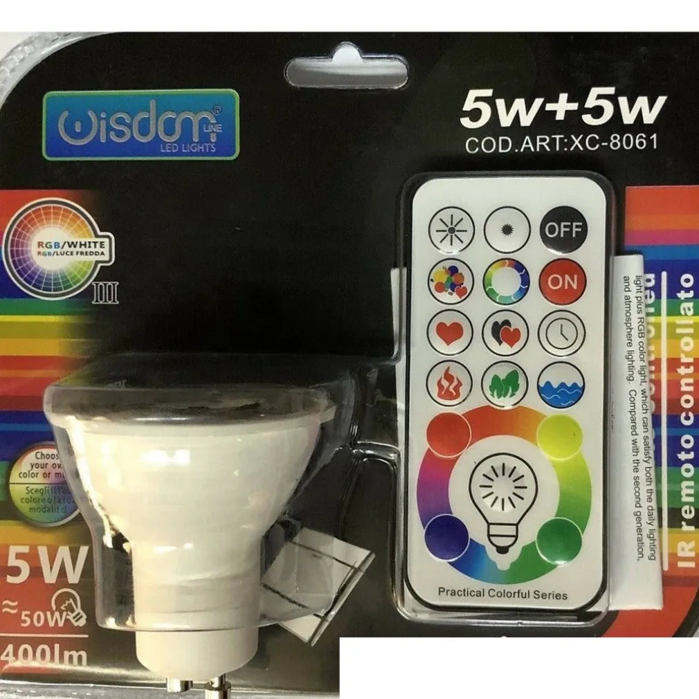 - Telecomando incluso per cambiare i colori e gli effetti di colore: Solo 5w(rgb) + 5w( Fredda ) di consumo effettivo Faretto a LED cambiacolore RGBW per la produzione di luce bianca o colorata, per prese con attacco GU10;