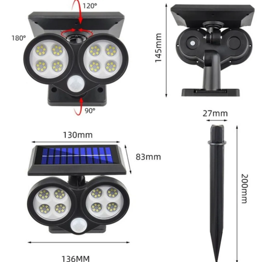Faretto solare per esterni Giardino Impermeabile. Lampada da parete a testa singola. Cortile Paesaggio Decorazione per prato Illuminazione Lampada