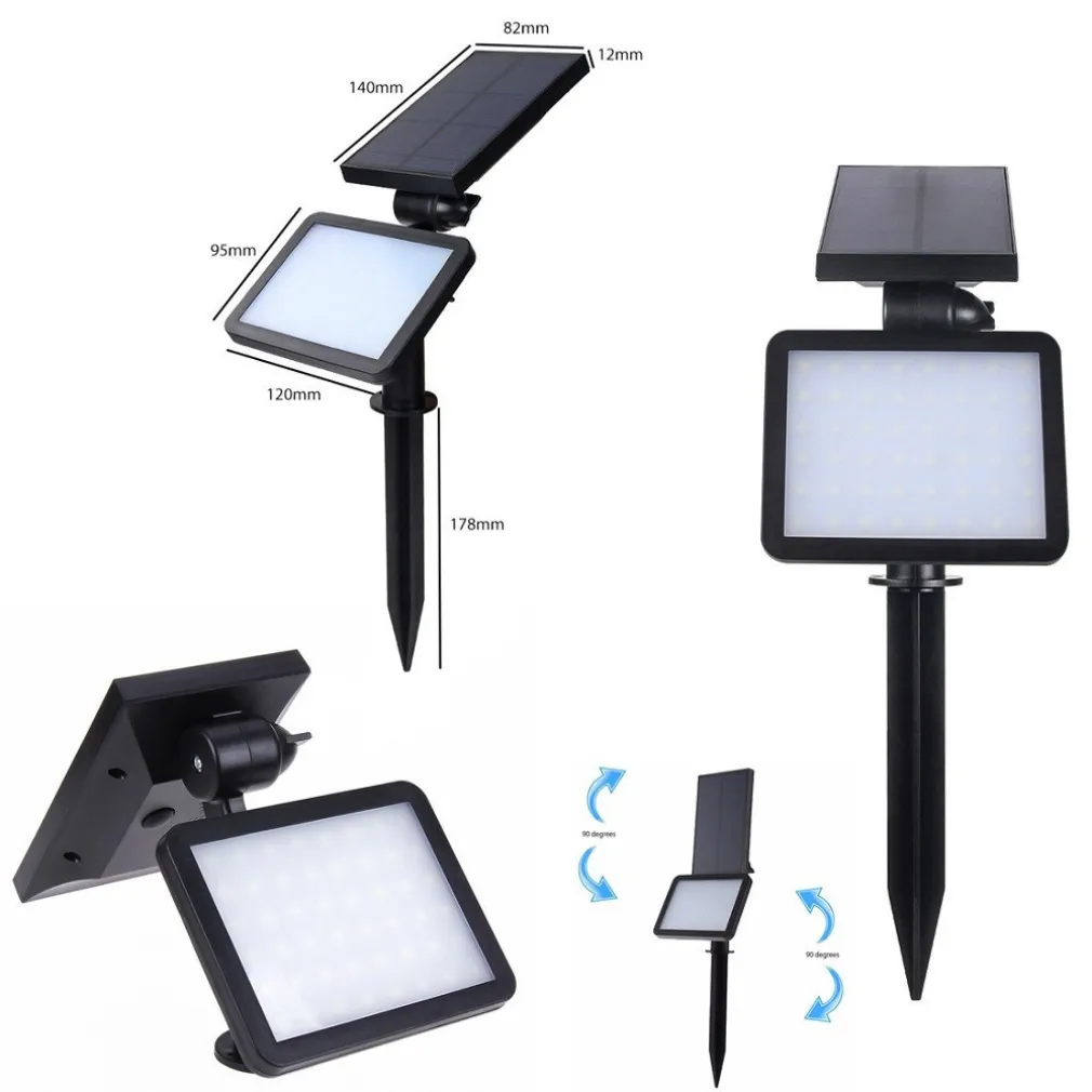 Pratica e comoda faretto lampada da giardino alimentata ad energia solare con controllo della luce led di ben 48 led a luce bianca. La lampada si spegne durante il giorno e si accende automaticamente durante la notte dimiminuendo man mano la sua intensità in base alla luce esterna; Minore sarà la luce esterna, maggiore sarà il fascio di luce della lampada; Maggiore sarà la luce esterna, minore sarà il fascio di luce della lampada, fino al totale spegnimento automatico.