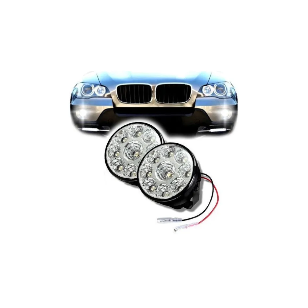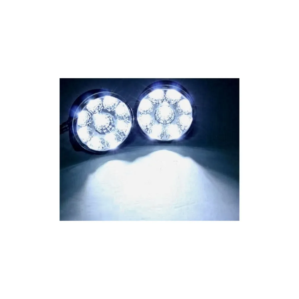 Coppia di faretti fendinebbia montaggio universale su tutte le auto 12V e LED ad alta potenza (DRL) ben 9 SMD per ciascun faretto. Luce Bianco Freddo ad alta luminosità e basso consumo di energia fino a 30 volte rispetto alle normali lampadine alogene, sono impermeabili e soprattutto hanno una lunga durata (oltre 50000 ore), complete di staffe regolabile e viti per il fissaggio e cavi di collegamento. Migliora la sicurezza durante la guida permettendo che il vostro veicolo sia visibile a distanza in caso di pioggia o nebbia.
