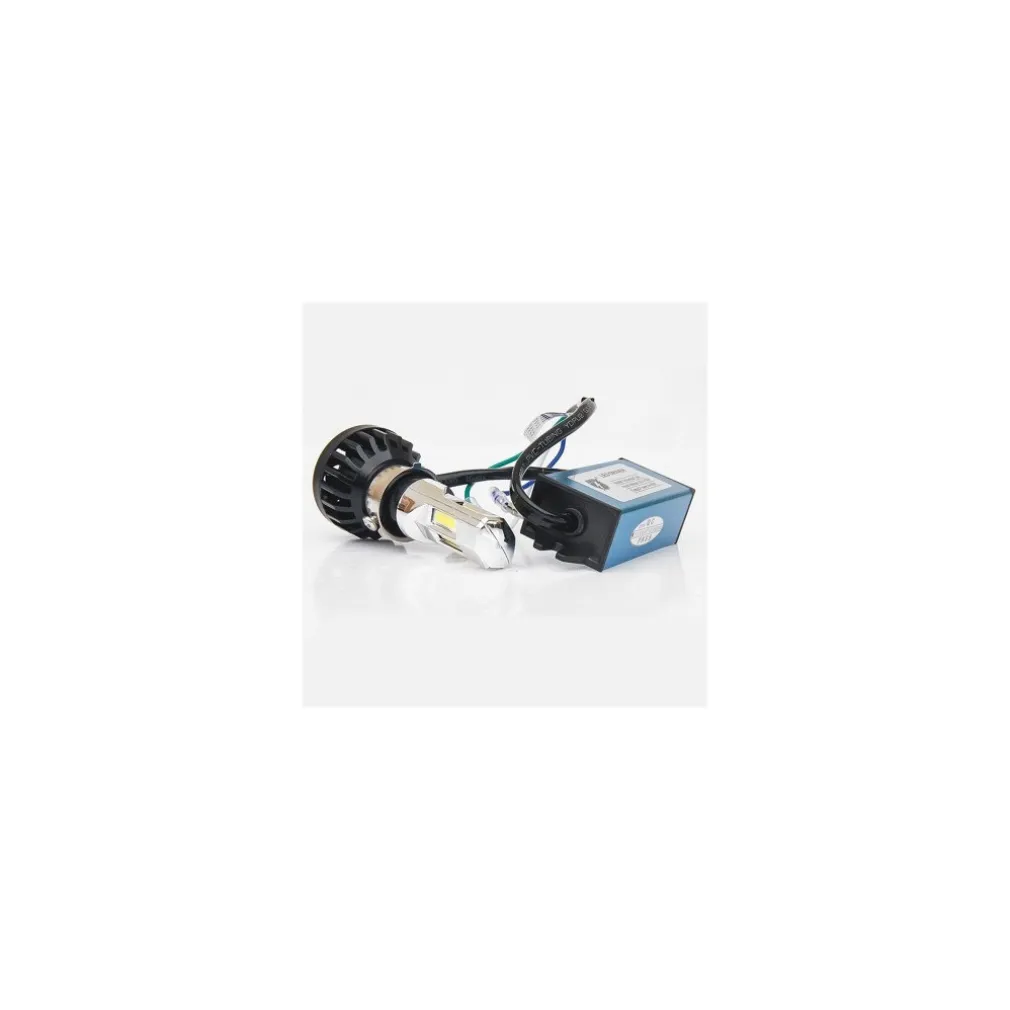 kit completo luce per faro moto scooter compatibile con modello M02E H4 e H6, nella confezione troverete due attacchi per le moto, ossia un attacco per modello H4 e un attacco per modello H6, la lamapada è composta da 6 led cree che emettono una luce bianchissima per una potenza di 35Watt. La luce è molto performante e molto luminosa 3500lumen, ideale per sostituire la vecchia lampada esaurita. Dotata di ventola interna per il raffreddamento della lampadina e per evitare il suo surriscaldamento.