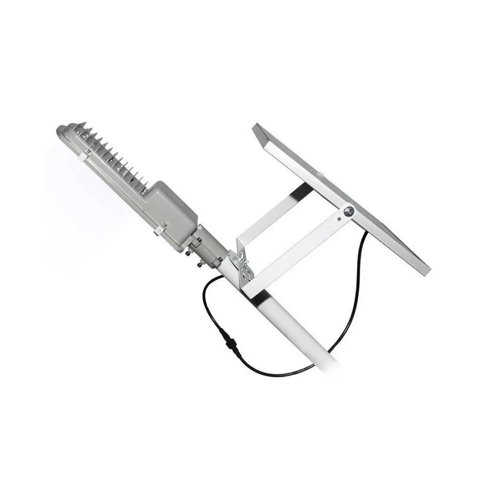 Lampione a led stradale completo di staffa per il fissaggio e di pannello solare separato in modo da poter direzionare il pannello nella posizione ideale per catturare i raggi solari, innovazione e design e dalla grande potenza e luminosità con staffa e pannello solare. Ottima soluzione per istallazione in zone controluce o nei pressi di ostacoli per il sole in determinate ore, in quanto la staffa e il pannello solare separato vi permetterà una direzionalità del pannello ideale alle vostre esigenze.