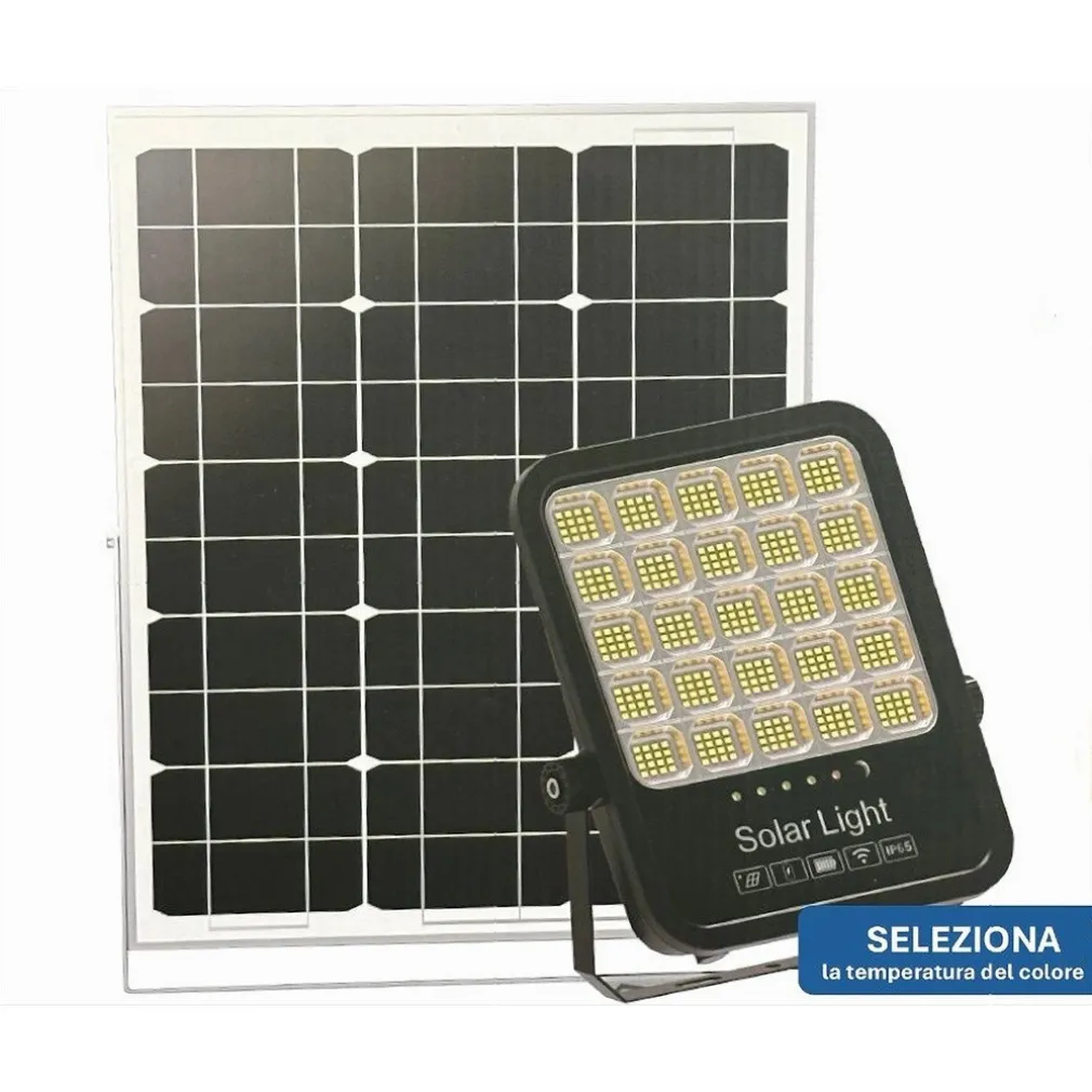 FARO LED PROIETTORE 300W IP65 CCT 3IN1 CON PANNELLO SOLARE TELECOMANDO RY-300W-3C