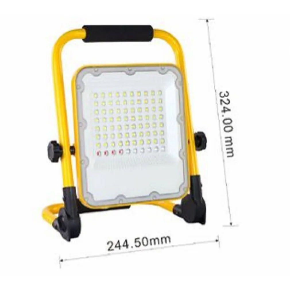Faro LED con potenza di 50W, staffa a pavimento e cavo di alimentazione USB. Faro con tecnologia LED SMD LUMILEDS, adatto all’uso esterno e con grado di protezione IP65. Fascio luminoso di 90°. La potenza di 50W è equivalente a 140W di un faro alogeno. Può essere installato a pavimento grazie al supporto in dotazione realizzato in alluminio di colore giallo con supporti in materiale plastico di colore nero. E’ dotato inoltre di comoda maniglia per il trasporto è un faro immediatamente pronto all’uso.