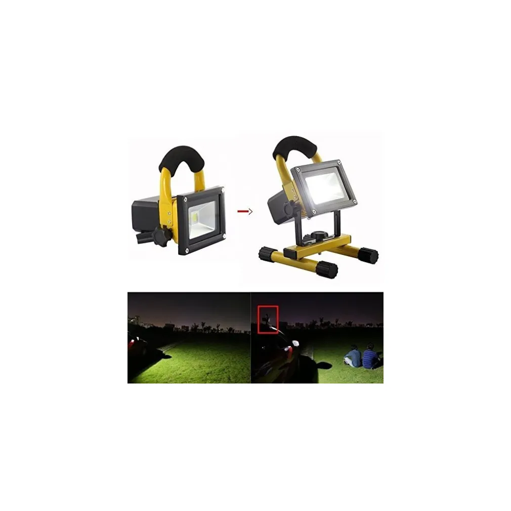 - 30W Faretto a led portatile con batteria integrata. Ideale per lavori di fai da te o per illuminare zone in cui non è presente la corrente elettrica. La potenza luminosa è assicurata da una sorgente a LED che assicura bassi consumi e luminosità elevata. Il faro può essere facilmente trasportato grazie alla pratica impugnatura o può essere poggiato grazie alla staffa da pavimento in dotazione. Il prodotto è anche per uso esterno in quanto è impermeabile agli spruzzi d’acqua. La carica del faretto avviene tramite caricatore a tensione di rete o tramite il pratico caricatore da auto(entrambe i caricatori sono inclusi in confezione).