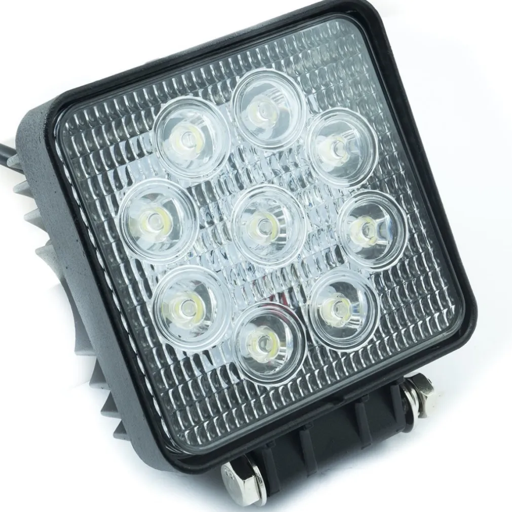 Faro supplementare a 9 Led da 27W, ogni LED da ben 3W 6000K luce bianco freddo, alta luminosità ideale per utilizzarlo come faro di profondità per fuoristrada, jeep, camion, barca. Con questo faro, potete avere subito la massima luminosità e più profondità. Utilizzo fuoristrada e agonistico, non adatto alla circolazione. E’ resistente all’acqua grazie al suo grado di protezione IP68. Può essere usata anche come lampada da lavoro grazie alla sua potente luminosità ed al basso consumo.