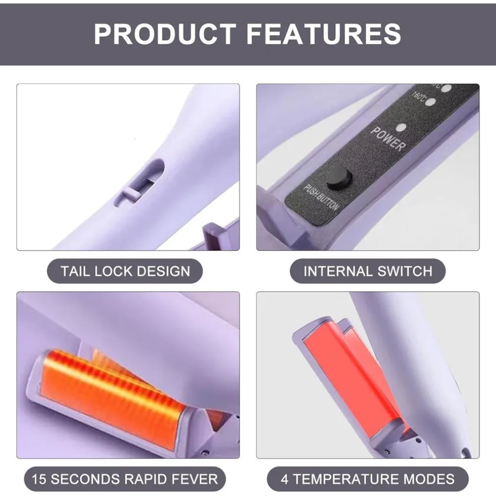 Il nostro ferro arricciacapelli a doppia canna ti permette di creare diverse acconciature: dalle onde larghe e naturali agli stili più strutturati e romantici. È perfetto per look quotidiani, eventi speciali o sessioni creative di hairstyling.
