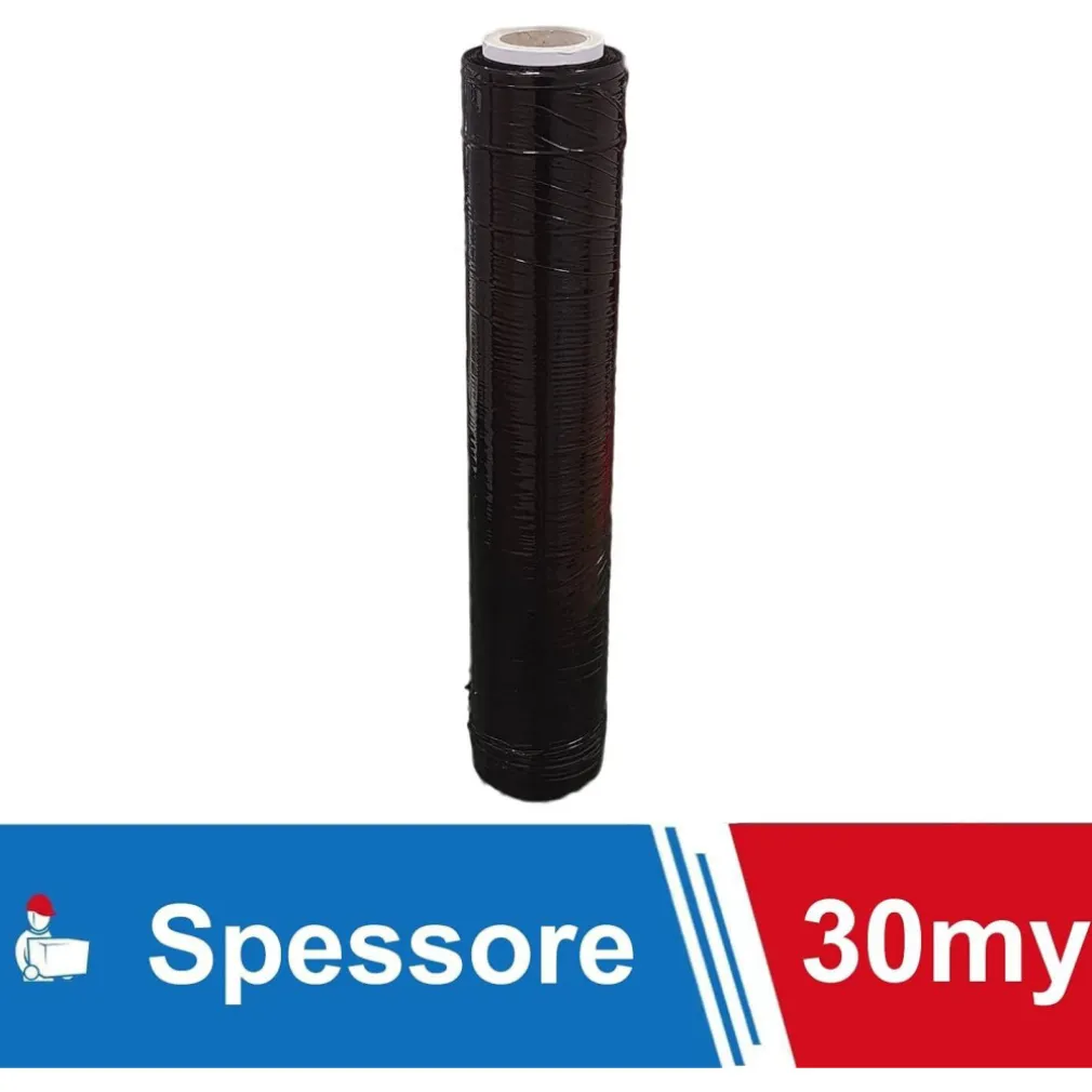 Questo cellophane da imballaggio nero, realizzato in materiale extra stretch è l’ideale per qualsiasi vostra esigenza di imballaggio e stoccaggio! L’eccellente coprente non consente di leggere il contenuto dell’imballaggio anche con materiale colorato