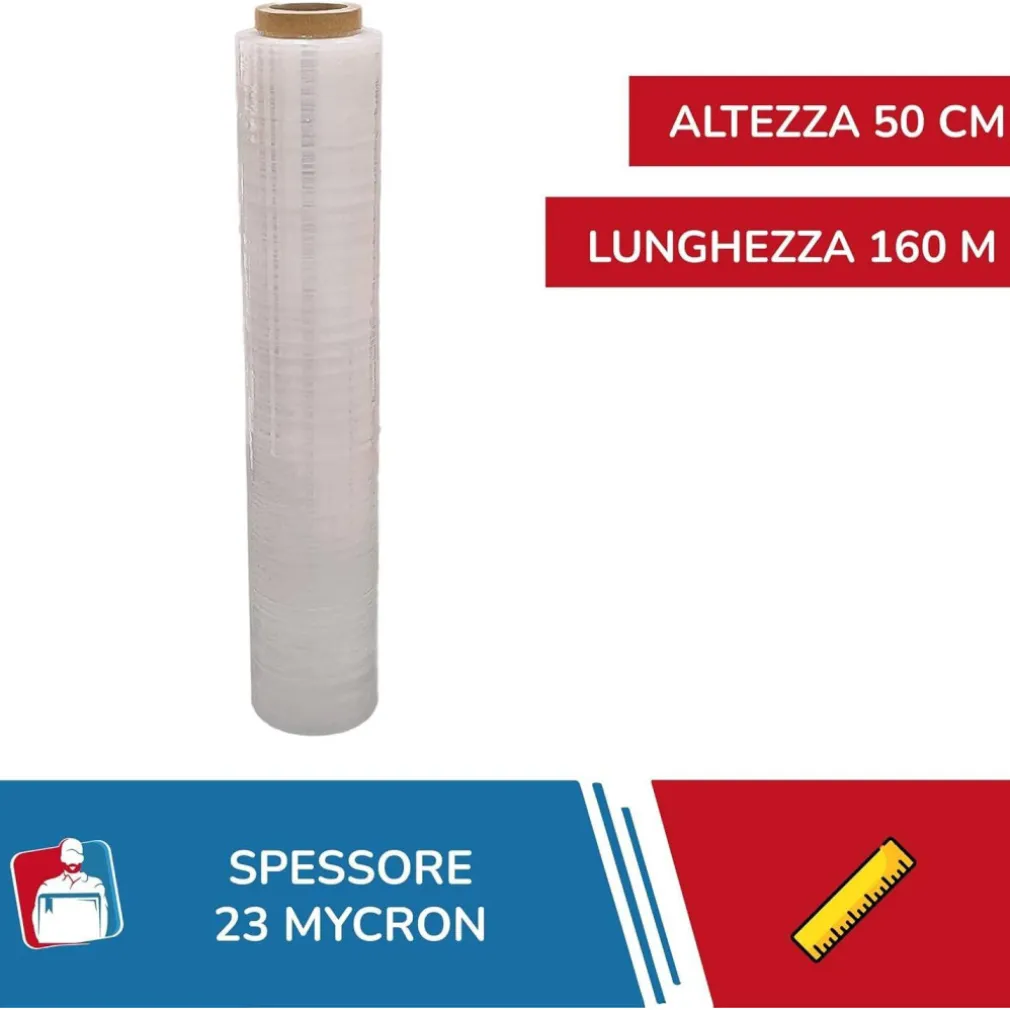 Film estensibile per uso manuale in polietilene coestruso a tre strati LLDPE, con tecnologia Cast, utilizzata per ottenere materiali termoretraibili ad alta resistenza e trasparenza. Grazie all’estrema resistenza alla perforazione, la pellicola consente l’utilizzo e la perfetta stabilità del carico. Ogni rotolo ha altezza di 50 cm, lunghezza 160 metri e spessore di 30 my, con peso di 2,2 kg, disponibile in versione trasparente o colorata