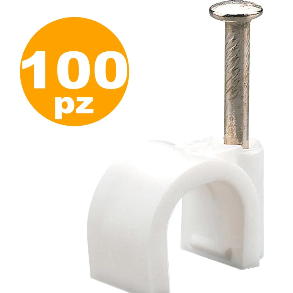 Contenuto della Confezione: Ogni confezione contiene 100 fissacavi con chiodo in acciaio, tutti di colore bianco. Con questa ampia quantità, avrai tutto il necessario per completare i tuoi progetti di fissaggio con facilità.