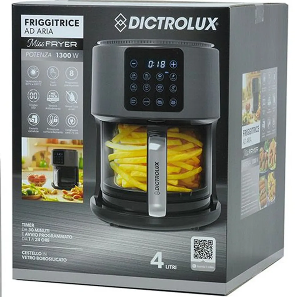 Friggitrice ad Aria con Cestello Trasparente in Vetro 1300W 4LT – Miss Fryer Dictrolux