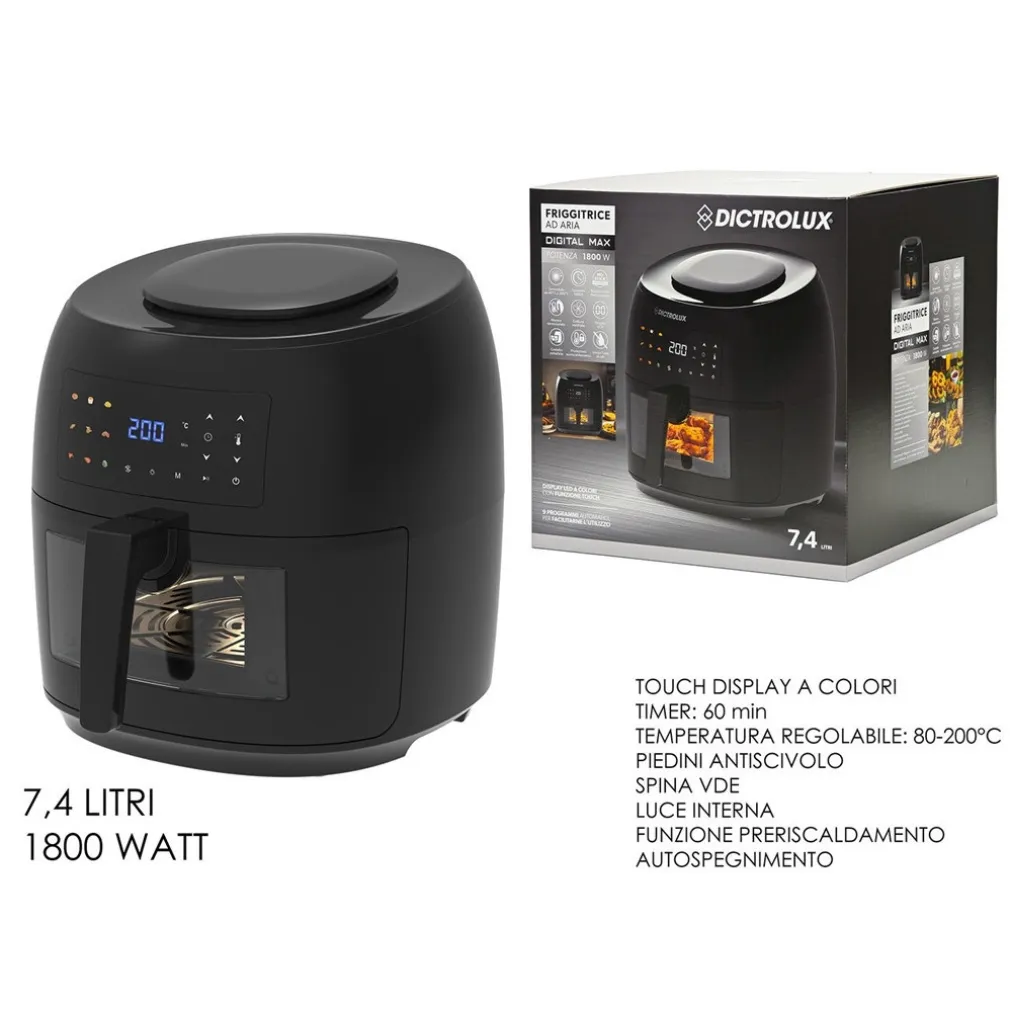 Scopri la friggitrice ad aria con oblò da 7,4 litri che ti farà rivoluzionare il modo di cucinare! Con un design moderno e un sistema di cottura avanzato, ti permette di preparare piatti croccanti e gustosi riducendo al minimo l’uso di olio. Con questa friggitrice ad aria digital max porterai in tavola ricette sane e irresistibili, dai classici come patatine e pollo fritto fino a verdure, pesce e dolci.