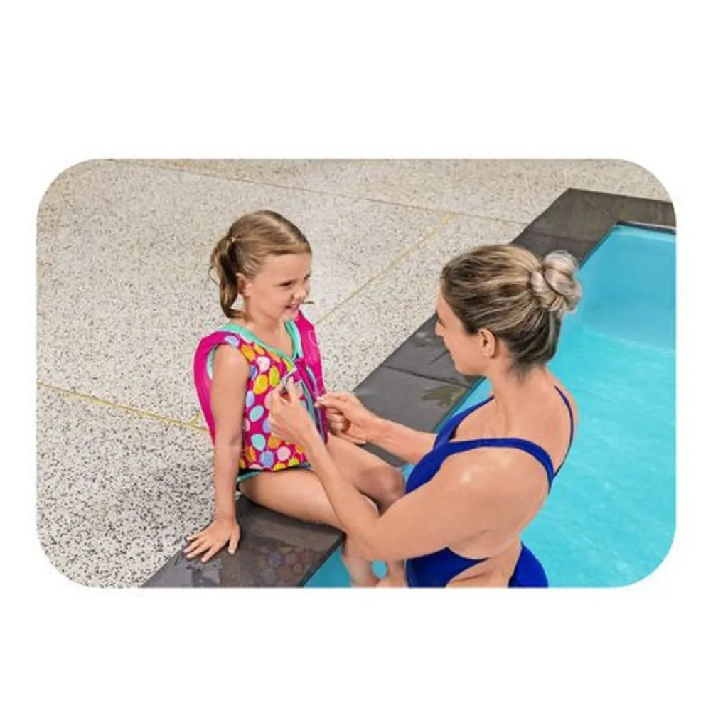Gilet salvagente trainer con cuscinetti in schiuma all’interno, chiusura lampo e cinghia di sicurezza. Il giubbotto salvagente per bambini è realizzato per la Fase B: nozioni di base sull’acqua. Progettato con un tessuto a maglia all’esterno liscio e confortevole, mentre i cuscinetti in schiuma all’interno faranno galleggiare i bimbi sull’acqua. La fibbia e le cinghie regolabili consentono di stringere o allentare la giacca alla taglia perfetta. Inoltre, c’è una resistente cerniera con blocco automatico con patta per tenerlo al sicuro.
