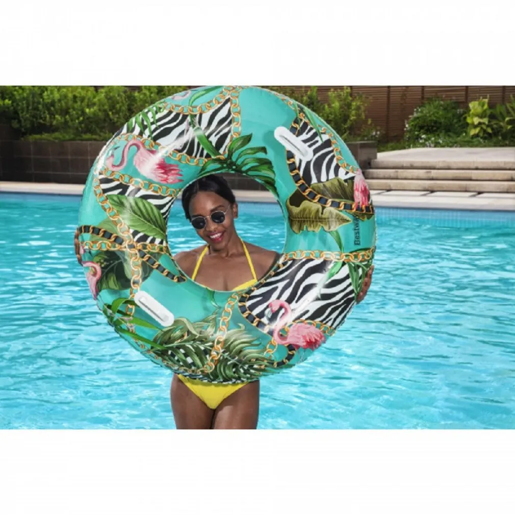 Rilassati in grande stile quest’estate, con l’elegante salvagente Floral Fantasy! Con il suo insolito motivo floreale saprà attirare l’attenzione di tutti, in piscina, ed è perfetto per farsi fotografare come per rilassarsi semplicemente sotto il sole. E grazie alle 2 maniglie super robuste da impugnare quando si è in acqua o per trainare gli amici da una parte all’altra della piscina, non è mai stato così facile essere alla moda mentre ci si diverte. Realizzato in materiali resistenti e pre-testati per garantirne la tenuta e longevità, estate dopo estate, questo salvagente è inoltre semplicissimo da gonfiare, sgonfiare e riporre a fine stagione. Metti in risalto la tua personalità, e preparati a far girare qualche testa, in spiaggia come in acqua! Con la sua originale stampa fantasia, Floral Fantasy diventerà l’accessorio indispensabile per le tue vacanze estive.