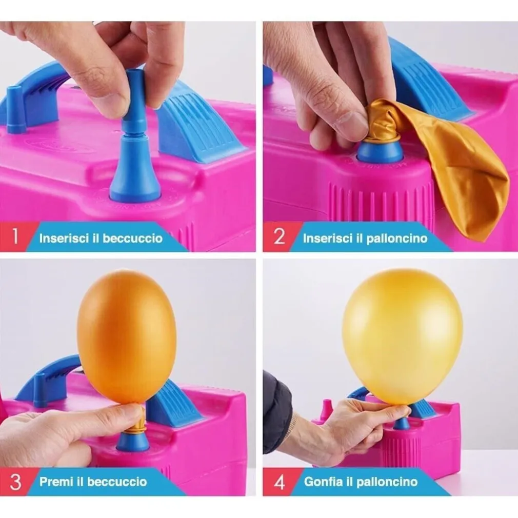 Gonfiatore Elettrico Gonfia Palloncini Pompa 600W 2 Beccucci Per Party Feste