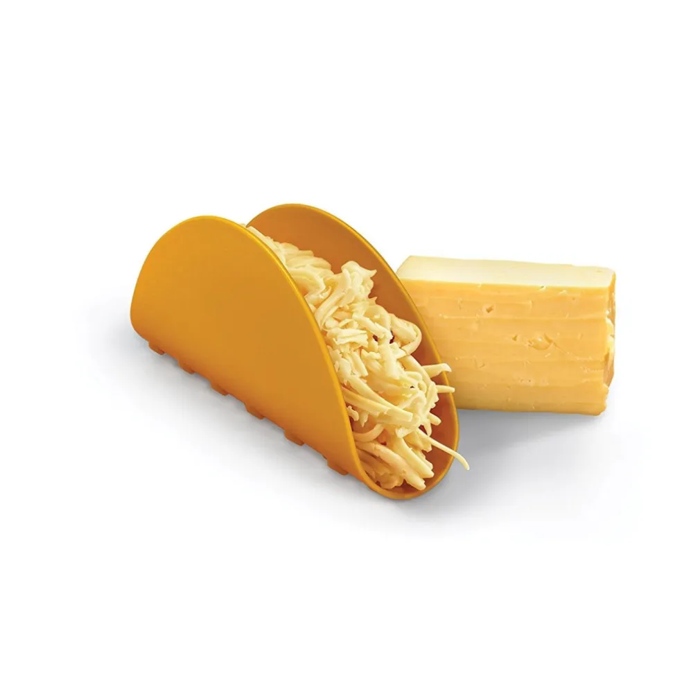 THE GRATE TACO fa a pezzi il tuo formaggio e lo tiene ben tenuto fino a quando non sei pronto a mirarlo alla tua enchilada o a rendere la tua quesadilla. Stampato in materiale plastico ad alta tecnologia e sicuro per l’uso alimentare, lavabile in lavastoviglie e al limite.