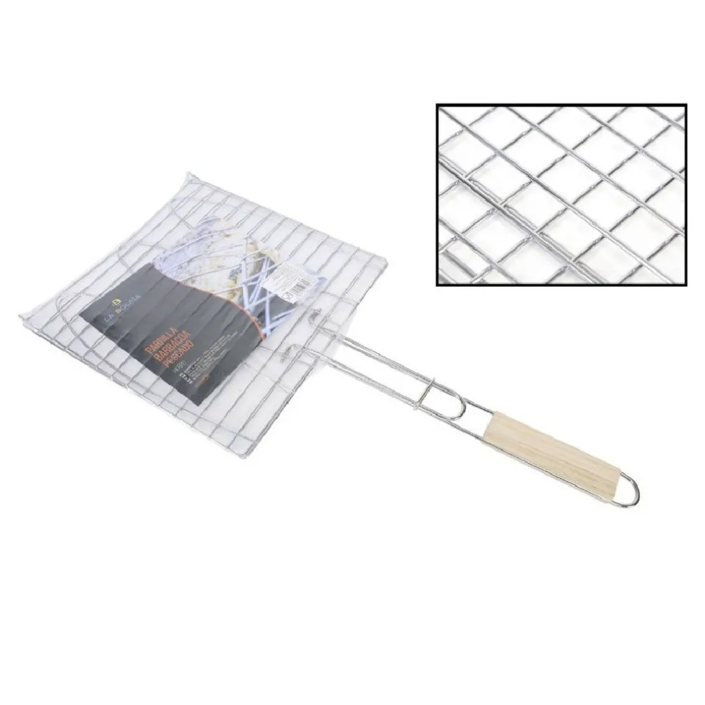 Robustezza e Resistenza: La griglia è realizzata con materiali resistenti che la rendono perfetta per resistere alle alte temperature e all’usura. Il manico in legno offre una presa comoda e sicura durante la cottura.