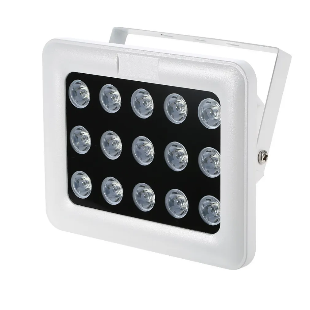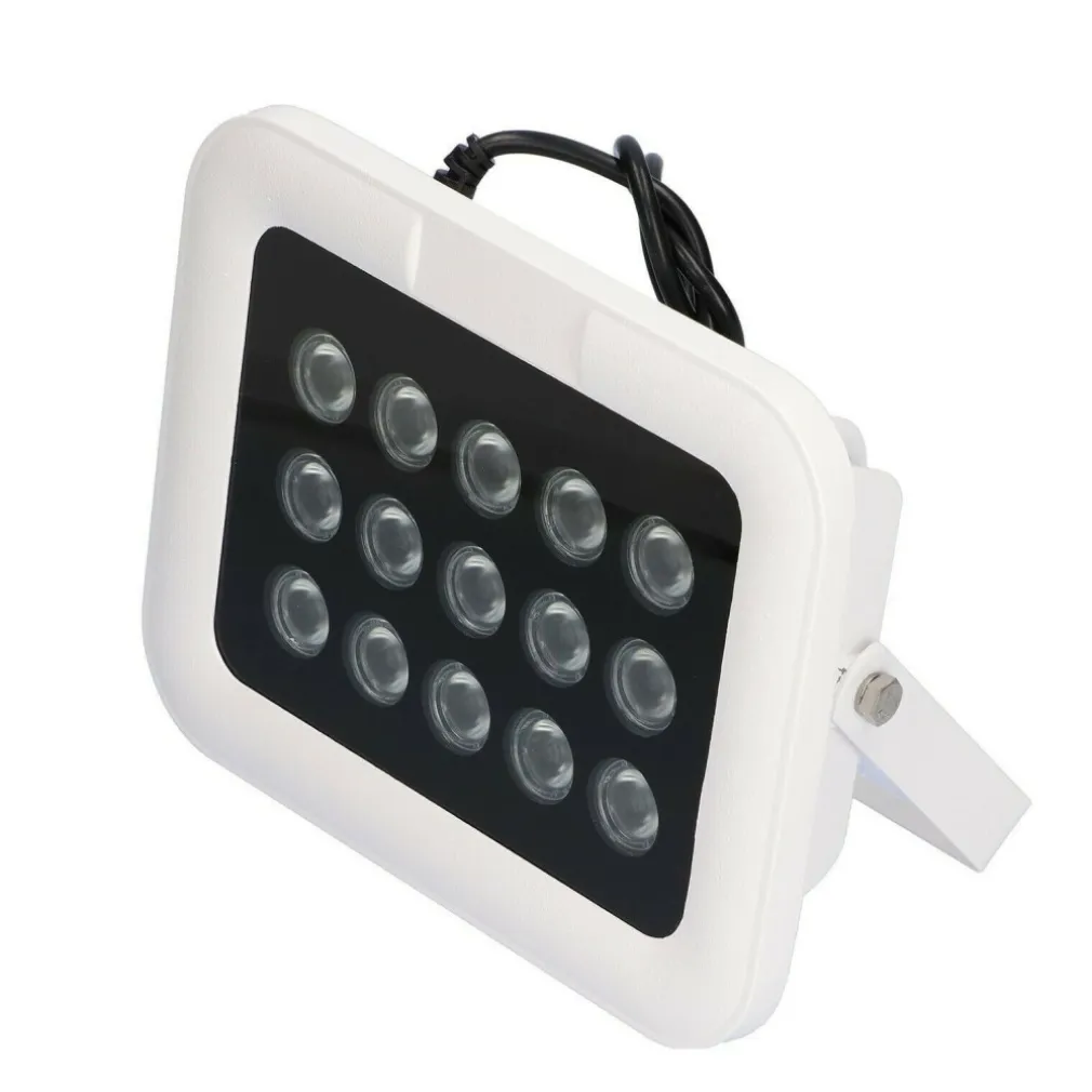 Illuminatore infrarossi, dotato di 15 led ad alta efficienza che ne garantiscono l’efficacia su notevoli distanze. Adatto in ampi spazi come giardino, retro della propria abitazione, ecc.. oppure dove l’illuminatore della telecamera risultasse insufficiente. Fornito di staffa di fissaggio forata, per semplificarne l’installazione con cavo dotato di spinotto per inserirvi un alimentatore da 12V (non incluso nella confezione)