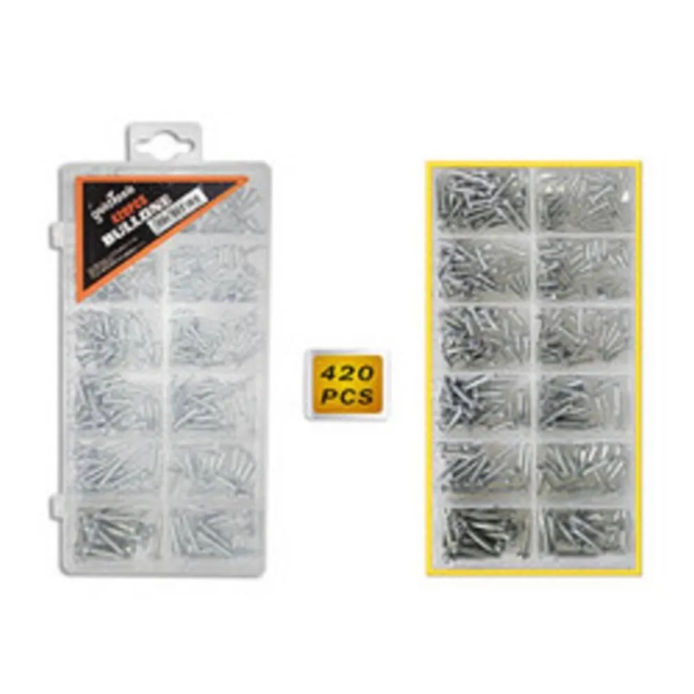 Kit da 420 viti a testa tonda e svasata piatta 12 misure diverse con impronta a croce; la confezione comprende: