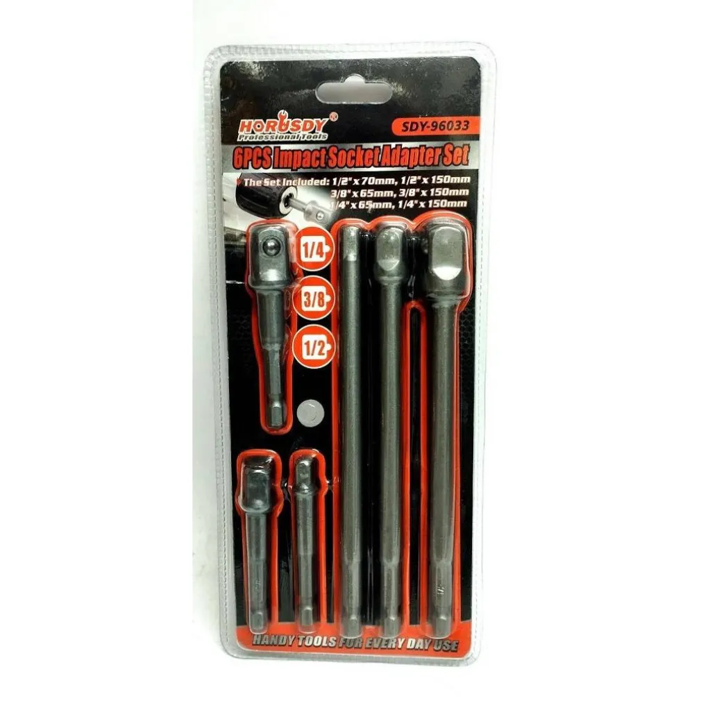 Kit 6 adattatori per chiavi a bussola quadrate impatto percussione 1/4″ 3/8″ 1/2″ 96033