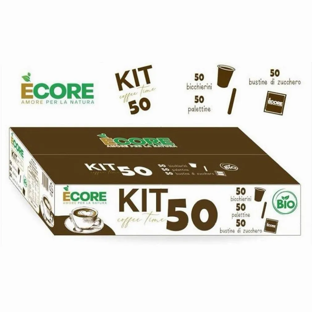 Il kit include 50 bicchierini, 50 bustine di zucchero e 50 palettine, tutto ciò di cui hai bisogno per preparare e servire 150 caffè.