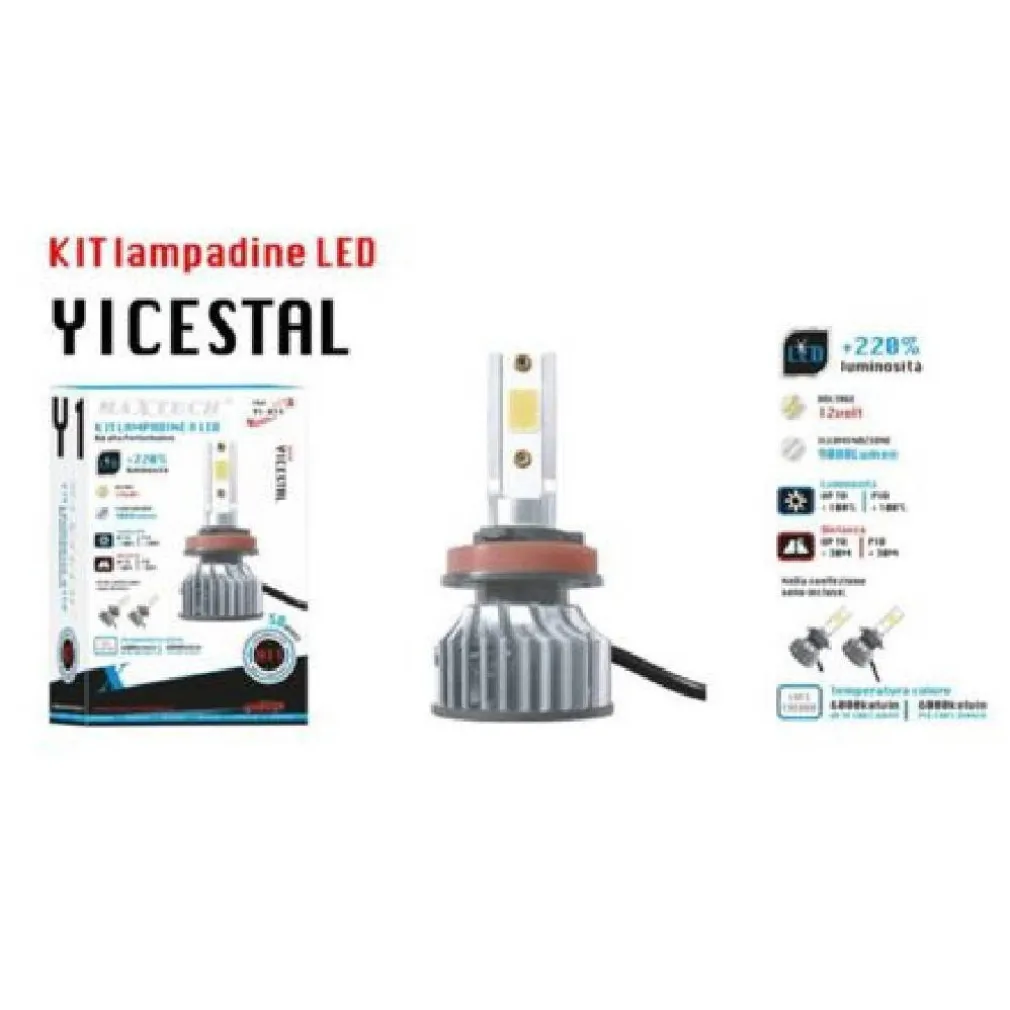 Coppia di lampadine led con attacco H11 per auto producono un fascio di luce super luminoso con una gradazione intorno ai 6000° Kelvin a luce fredda, ad alta performance.